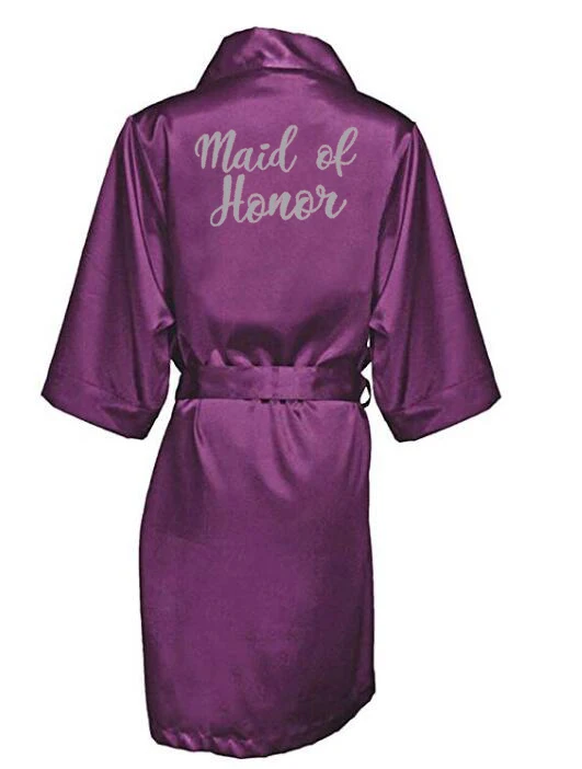 Женское свадебное кимоно для матери и подружки невесты, Короткое атласное платье фиолетового цвета с надписью, серебристого цвета, Прямая поставка