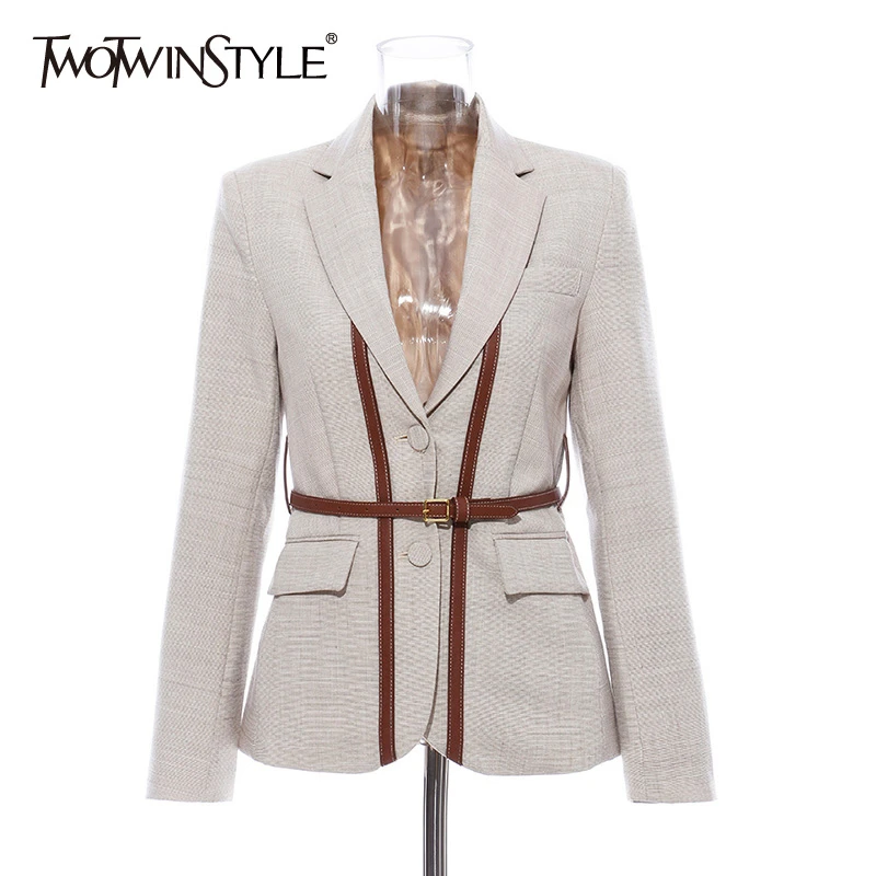 Женский блейзер в стиле пэчворк TWOTWIN, с длинным рукавом и английским воротником, 2020