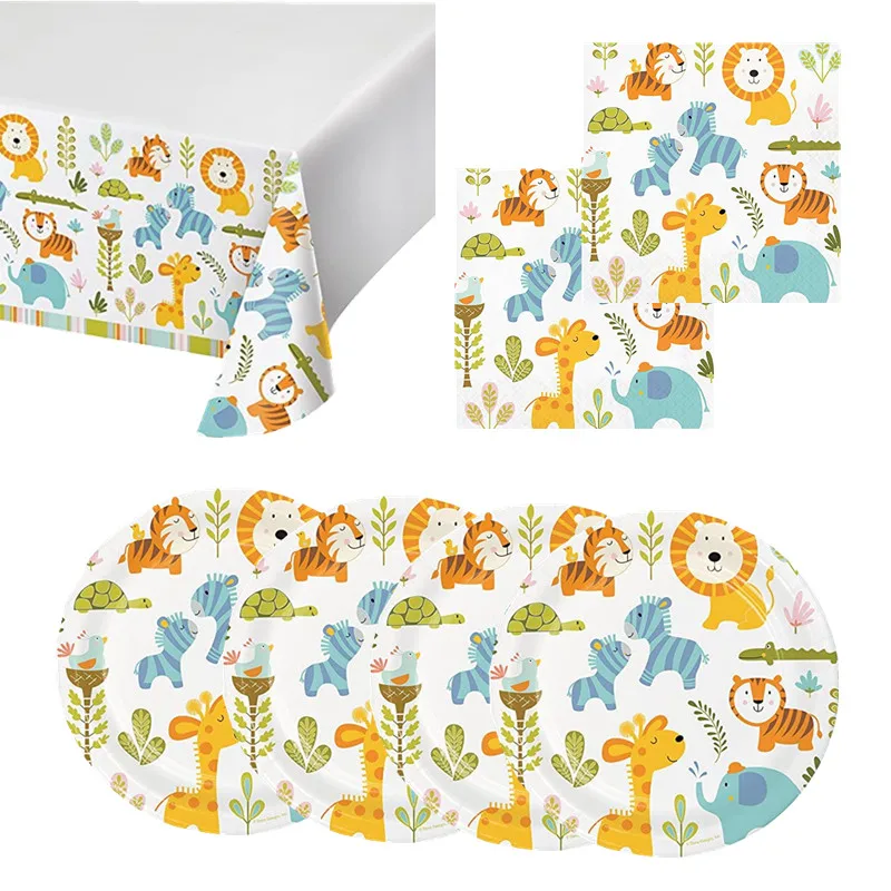 Одноразовая посуда в виде животных джунглей для вечеринки, принадлежности для Салфетка под тарелку кружку, украшение для дня рождения, детского праздника