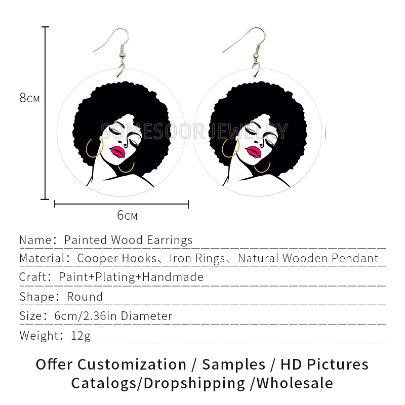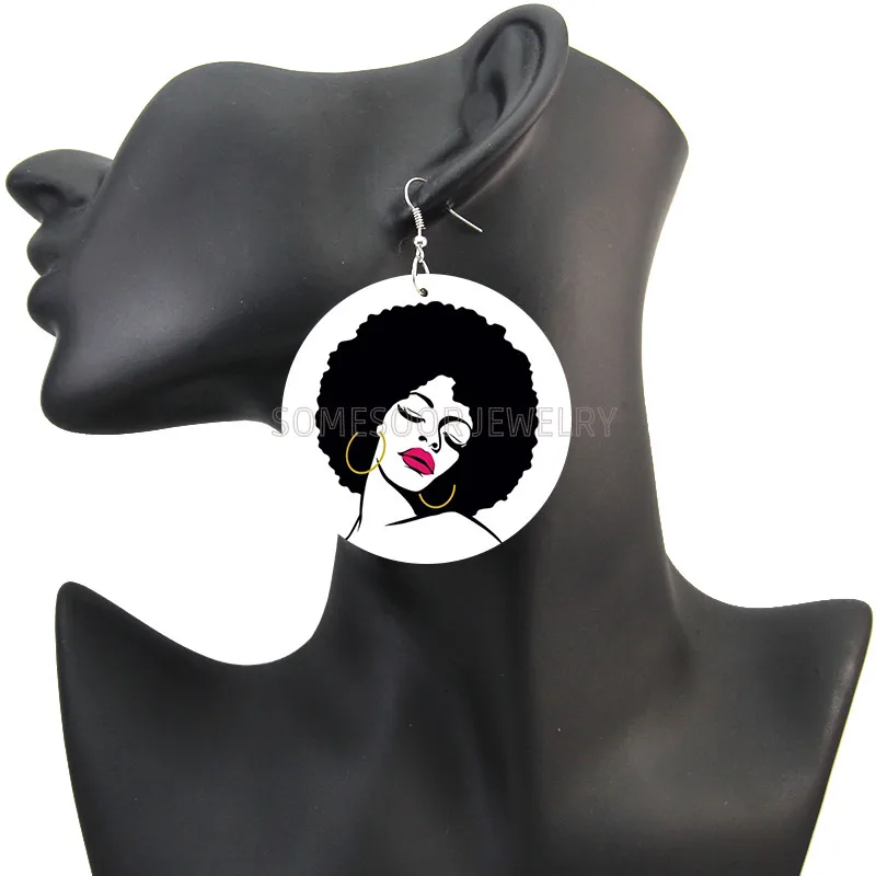SOMESOOR меланин поппин королева вьющиеся деревянные висячие серьги...