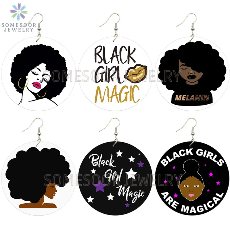 SOMESOOR афро меланин волшебные деревянные серьги-капли с принтом африканские натуральные волосы обручи дизайн ювелирные изделия для черных женщин Подарки