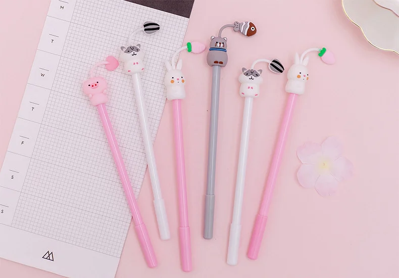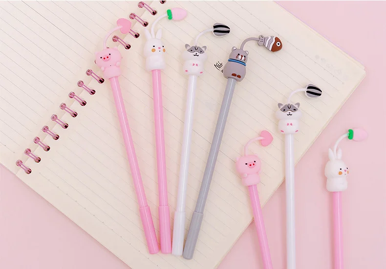 Гелевые черные чернила для ручки с мультяшным котом, Кроликом, хомя...