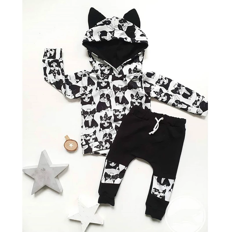 Комплект одежды для мальчиков и девочек, из 2 предметов, толстовка с мультяшным принтом + штаны, спортивный костюм, милый