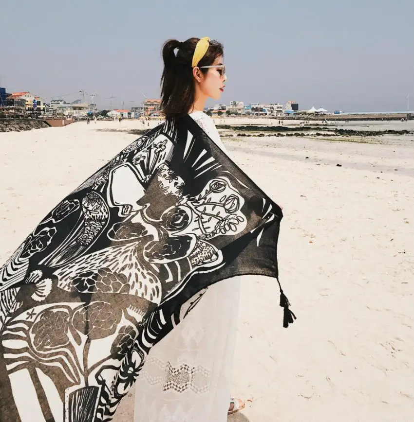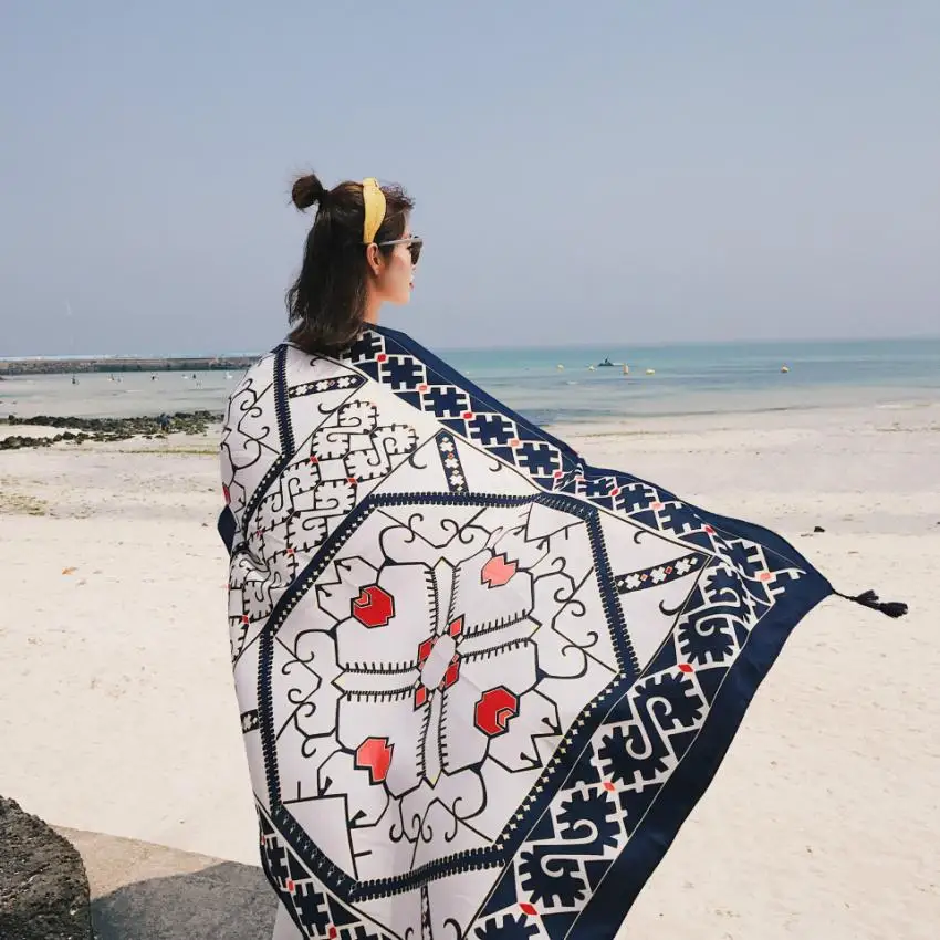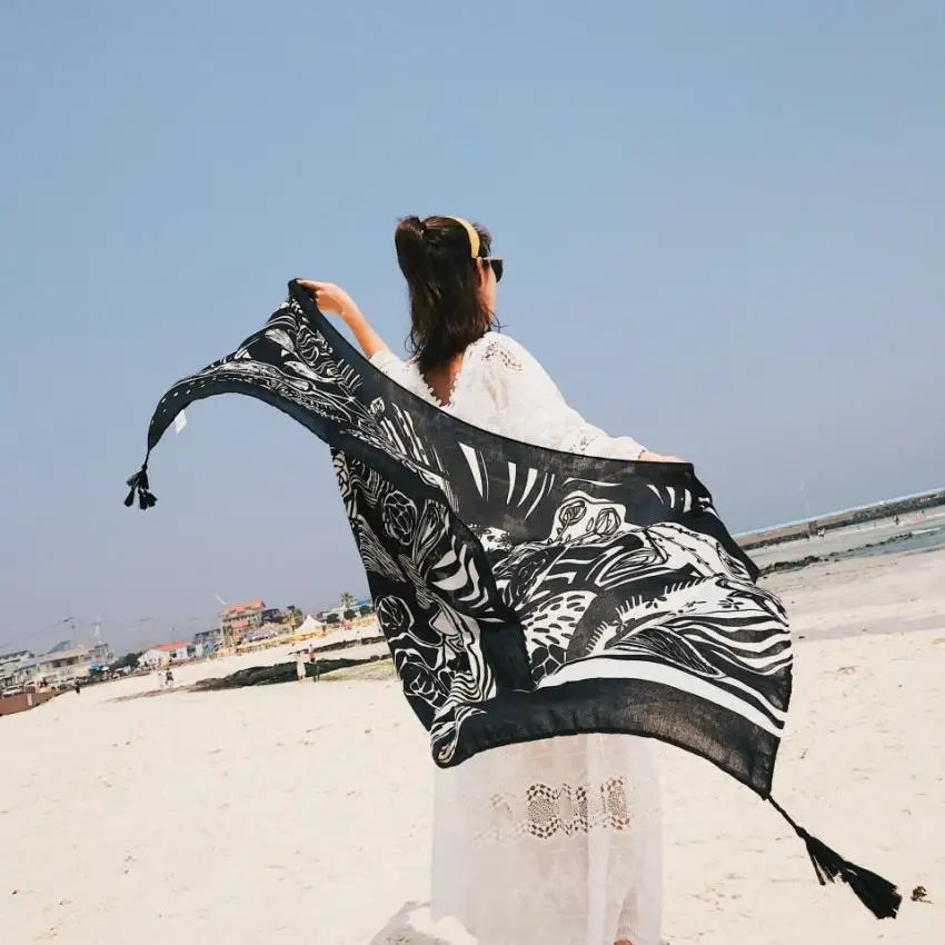 2018 Новое хлопковое парео из саржи 90x180 см, Пляжное накидка, женское Большое пляжное платье, бикини, купальный костюм, накидка, саронг, шарф