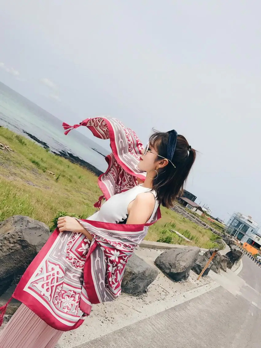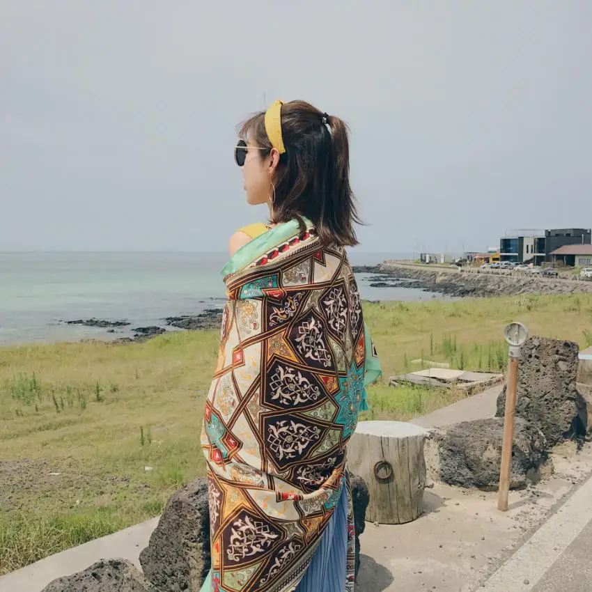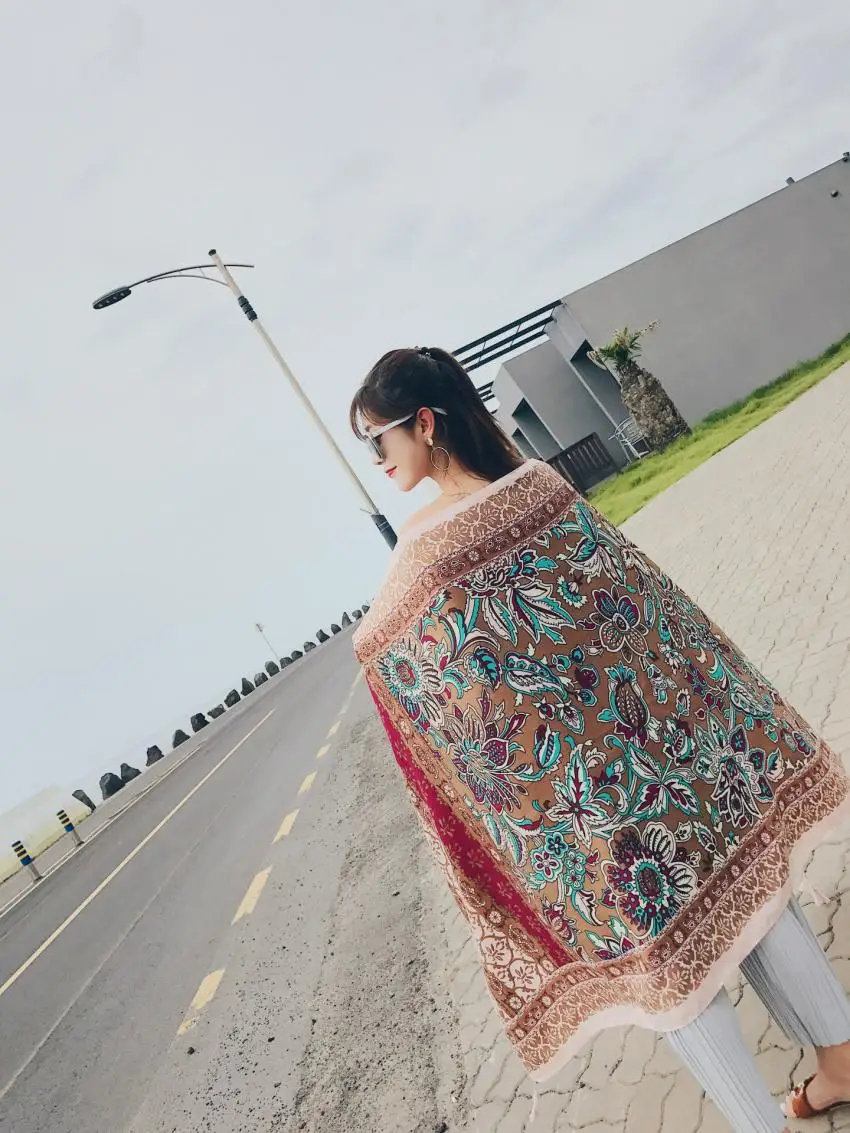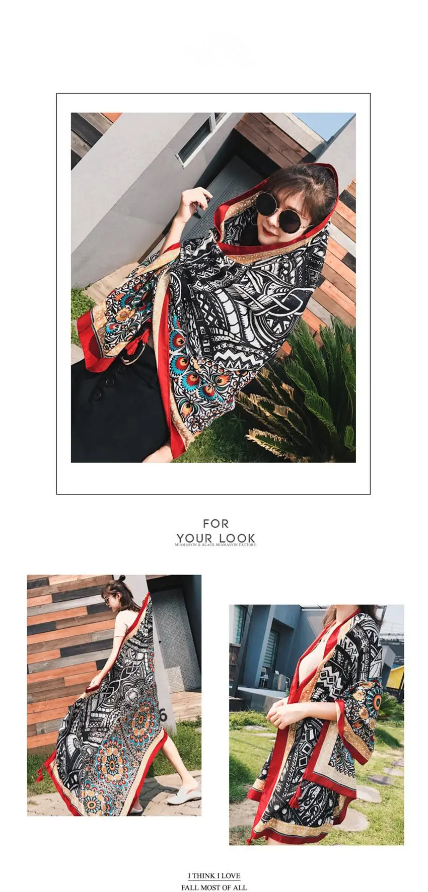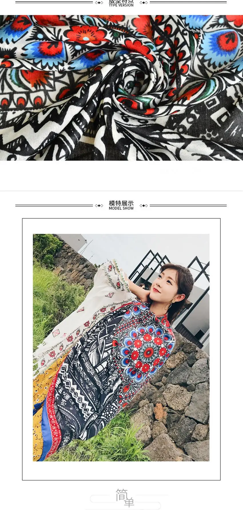 Это хорошая ткань, но не такая яркая, как на фото. Черно-белый Рисунок в нижней части фотографии-это должно быть штаны модели, потому что это не часть узора шарфа.