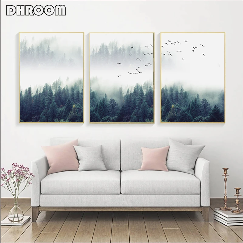 Лесной пейзаж, настенная художественная постер и печать, Скандинавское украшение, холст, живопись, декоративная картина для гостиной, домашний декор