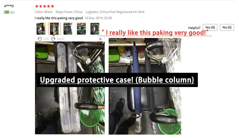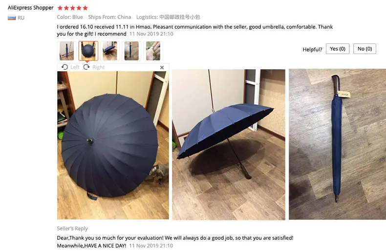 Зонт пришёл погнутый, но это скорее всего произошло при транспортировке, пришлось дважды заплатить за доставку продавцу и второй раз уже по прибытию в страну. Открыл спор, деньги за доставку вернули.
