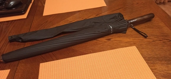 Отличный, качественный зонт. Внешний вид и характеристики полностью соответствуют описанию. Очень быстрая доставка в Санкт-Петербург. Заказывал из Китая 14 декабря, а 22-го уже получил. Причем в почтовое отделение посылка прибыла еще на 2 дня раньше. Т.е. на все про все, меньше недели. Самая быстрая доставка по моему опыту. Упакован в обычный почтовый полиэтиленовый пакет, ручка зонта дополнительно обернута пупыркой. Правда, это ее полностью не защитило. На рукояти имеется пара мелких сколов лака, вероятно от транспортировки. Но это не очень критично. В остальном зонт в полном порядке. Из недостатков модели можно отметить следующие: Чехол без лямки - за спиной не поносишь. Вместо заклепки липучка. Короткий ремешок - на запястье не наденешь, только на пальцы.