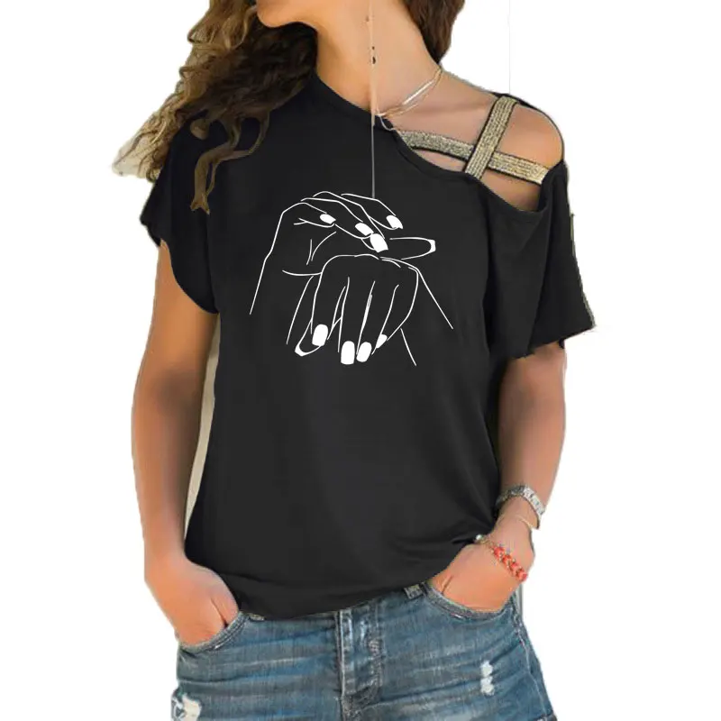 Новинка 2019, женская футболка для салона красоты, модная женская футболка с коротким рукавом и асимметричным скошенным перекрестным поясом, топы
