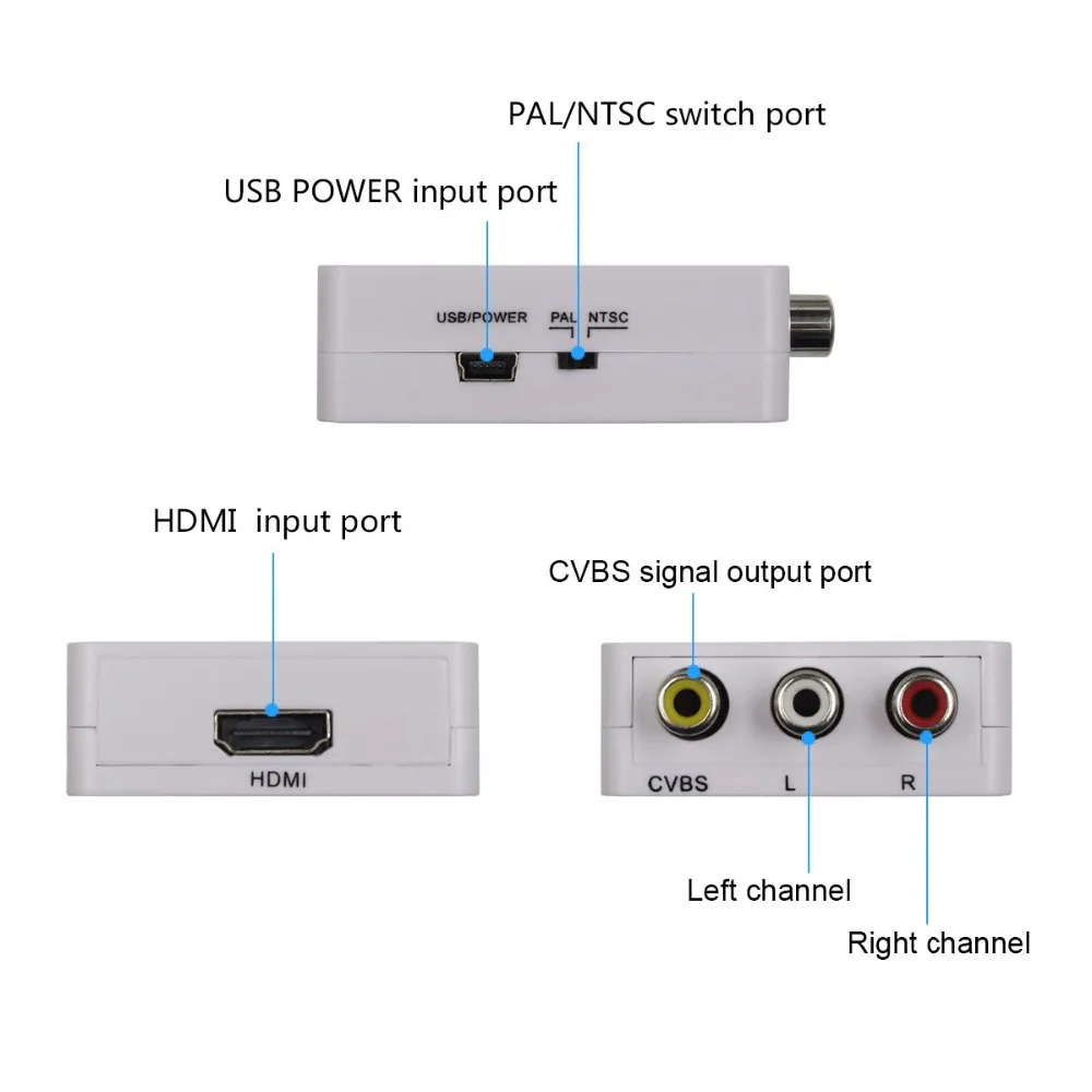 Адаптер HDMI в AV, преобразователь HD видео в RCA AVCVSB LR видео 1080P HDMI2AV Поддержка NTSC PAL для Mini