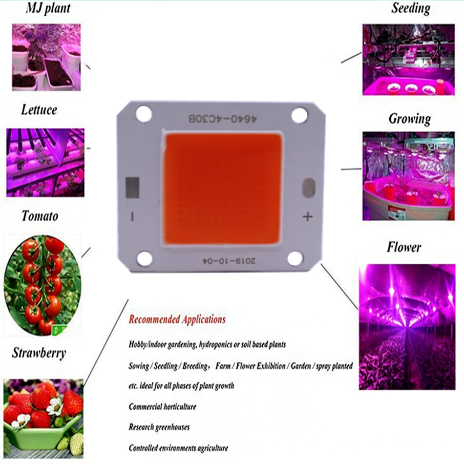 Светодиодный чип высокой мощности 380-840nm, лампы полного спектра для выращивания растений в помещении, 100 Вт, 12 В постоянного тока или 32 В постоянного тока, 40x46 мм