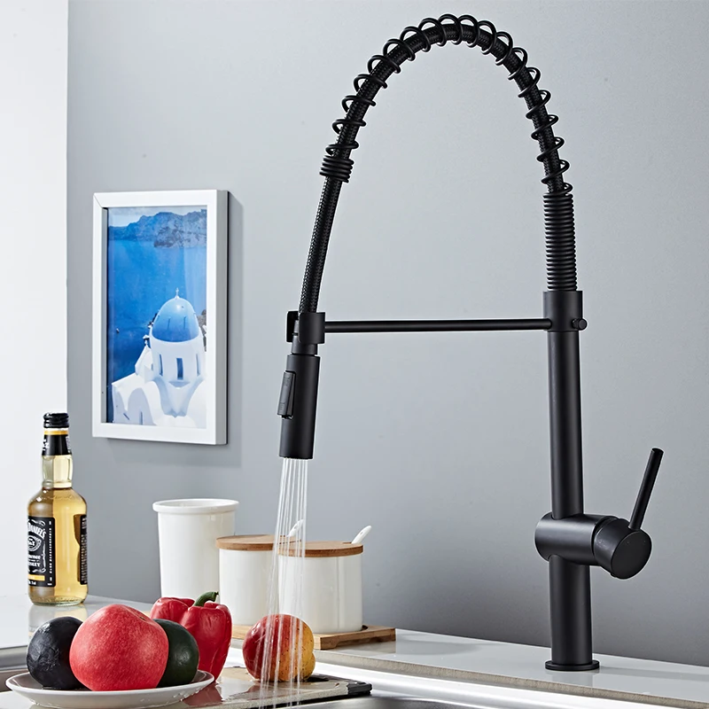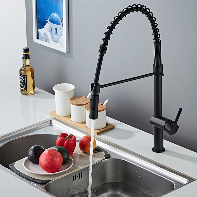 Смеситель для кухни со светодиодной подсветкой, 2 функции, матовый никель и черный