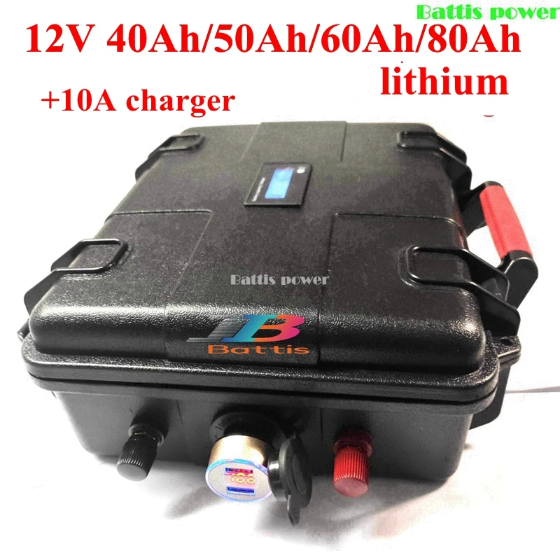 Аккумулятор для рыбалки, водонепроницаемая литиевая батарея 12 в 80 Ач 12 в 40 Ач 60 ач 80 Ач, USB, зарядное устройство 10 А