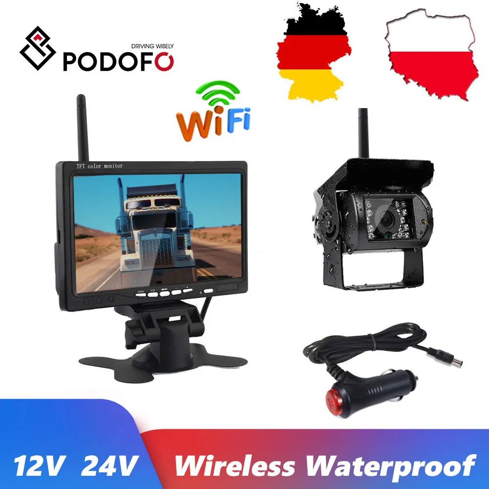 Podofo 7 "HD 12V 24V Беспроводной ЖК-дисплей заднего вида камера монитор автомобильное зарядное устройство для грузовиков автобус RV трейлер экскаватор