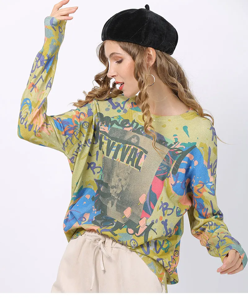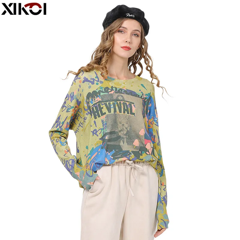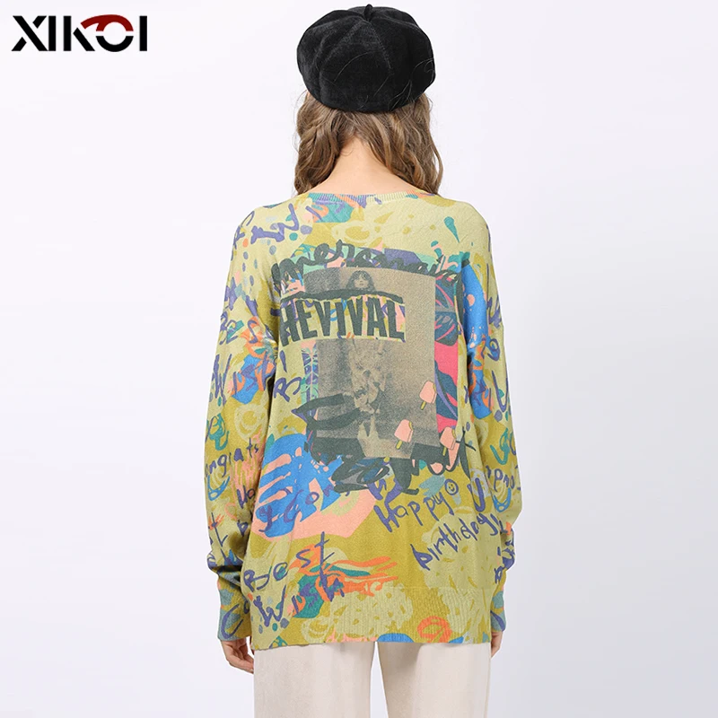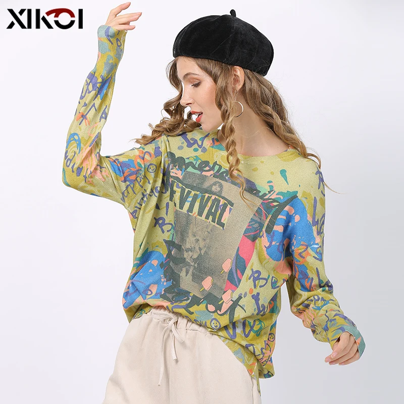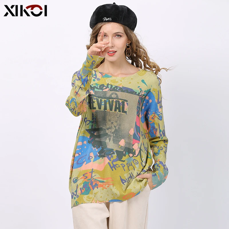 XIKOI, Осень-зима, свободный свитер с принтом, Женский пуловер размера плюс, теплые свитера, высокое качество, более размера d, толстый женский свитер, Новинка