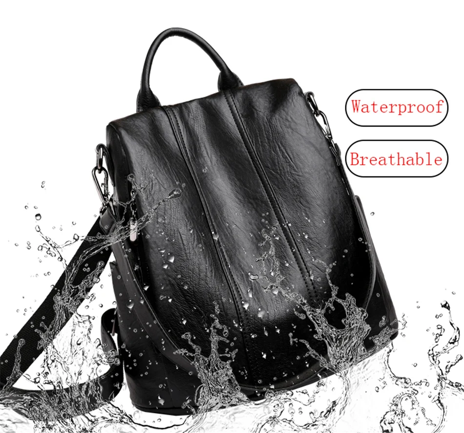 Женские кожаные водонепроницаемые Рюкзаки с защитой от кражи, модны...