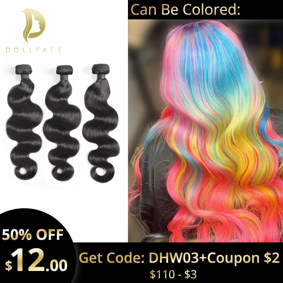 Бразильские вплетаемые волосы в пучках, объемная волна, необработанные девственные 3, 4 пряди, натуральные афро человеческие волосы для наращивания, 30 дюймов, Dollface