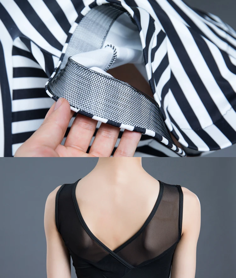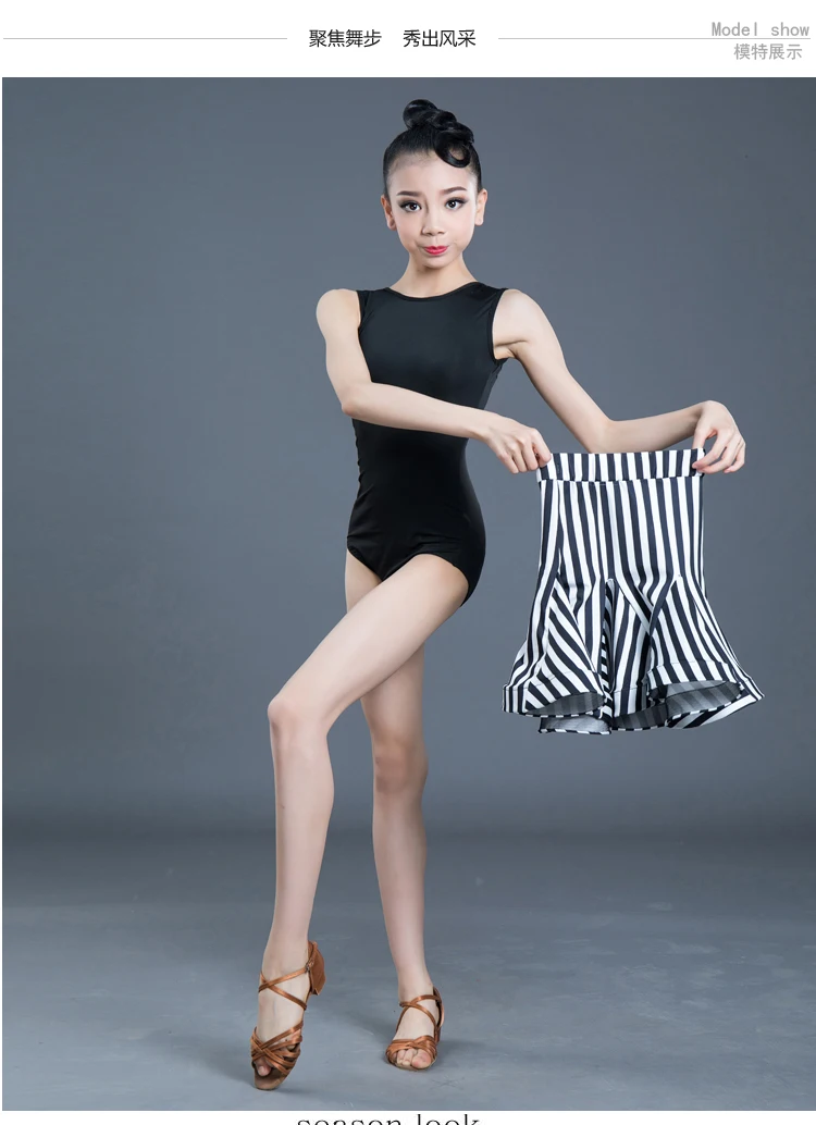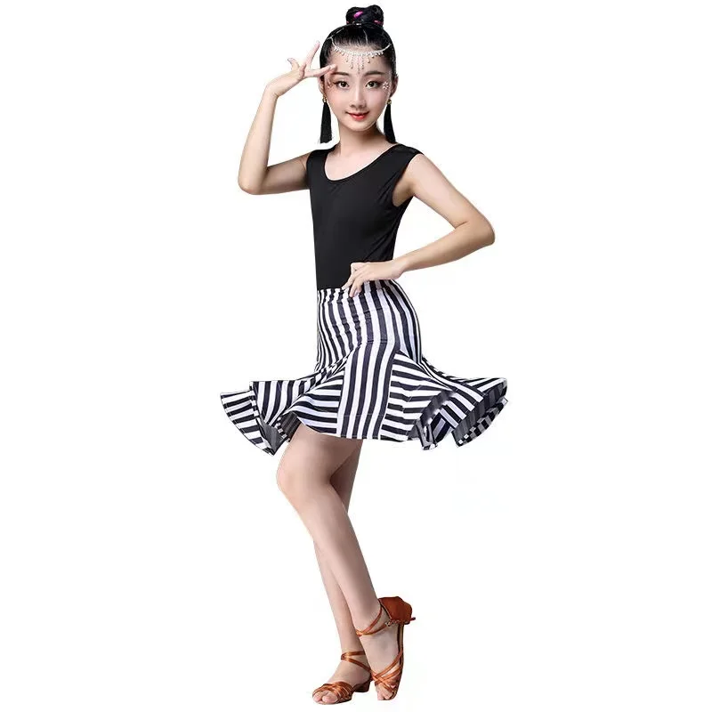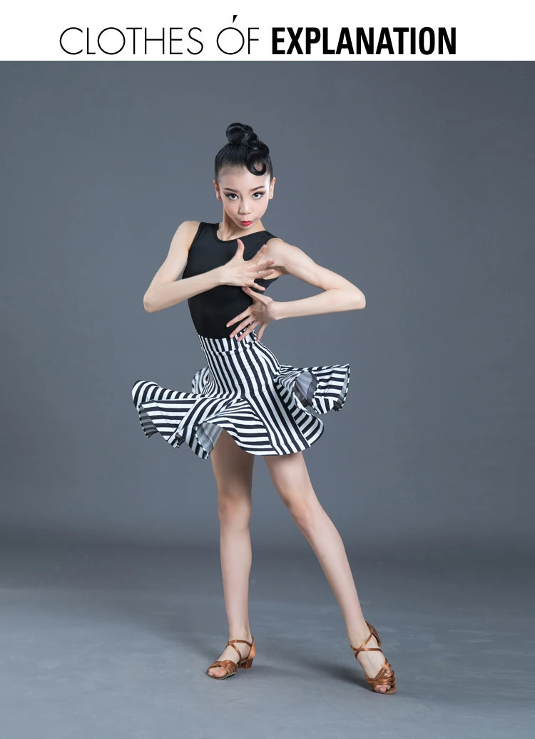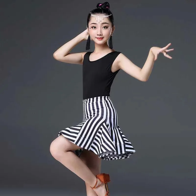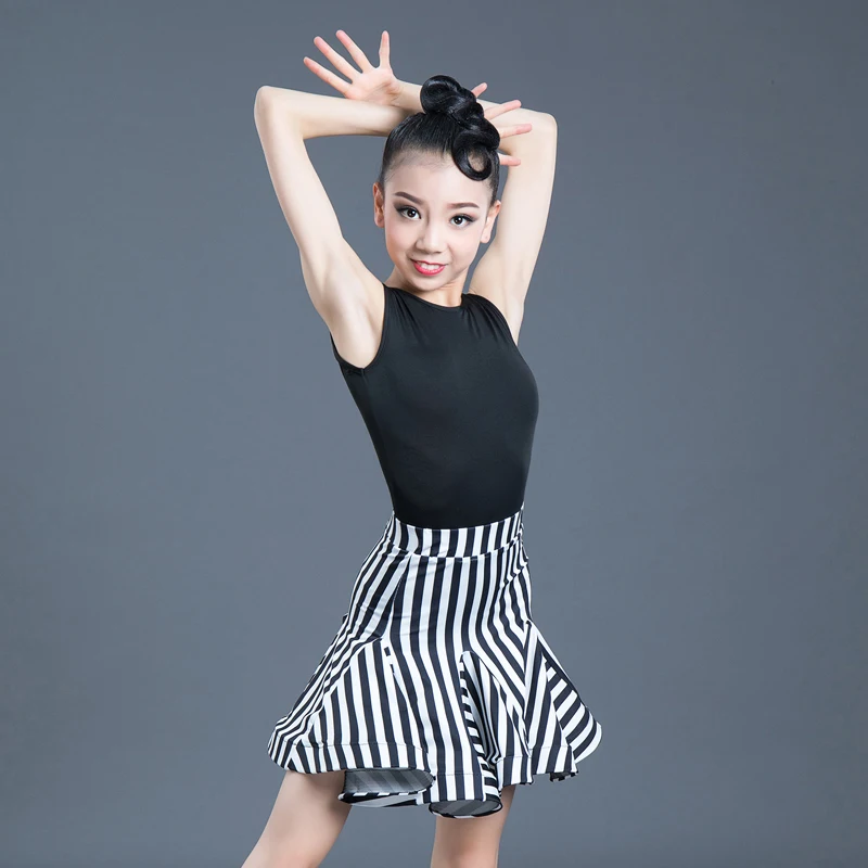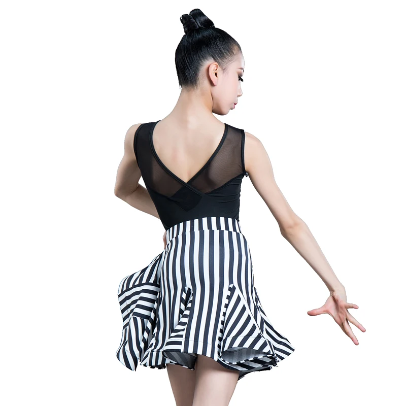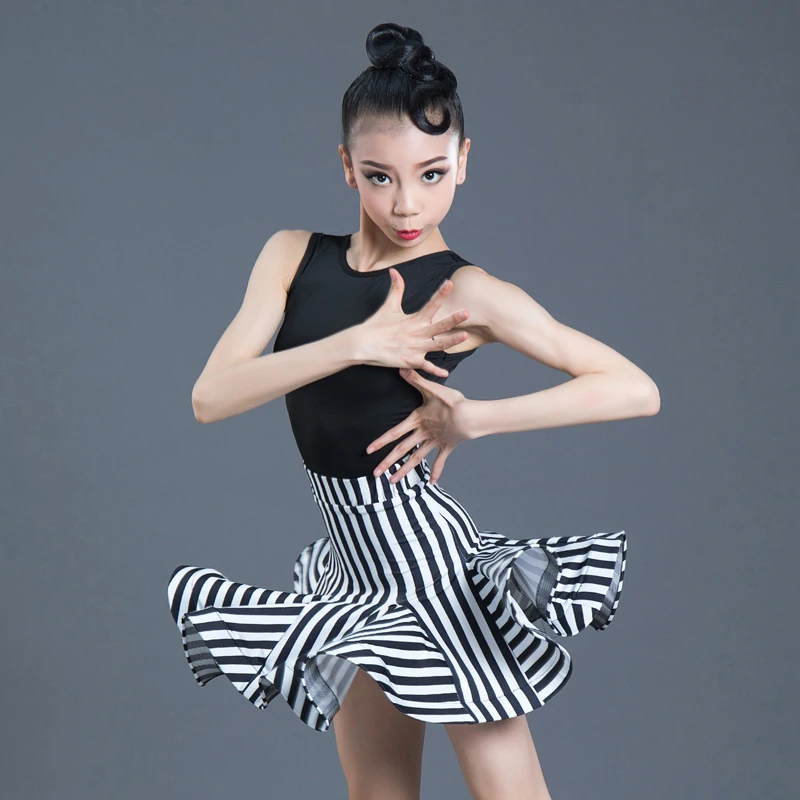 Платье детское для латиноамериканских танцев, платье без рукавов с открытой спиной, в черно-белую полоску, для стандартных представлений, танго, сальсы