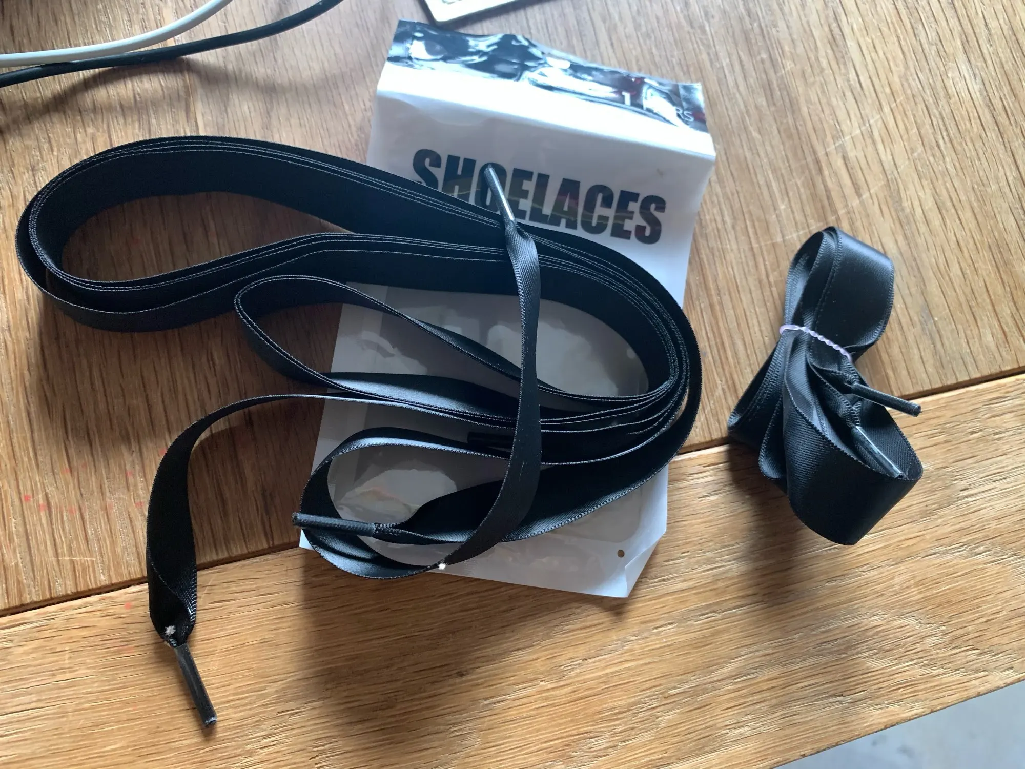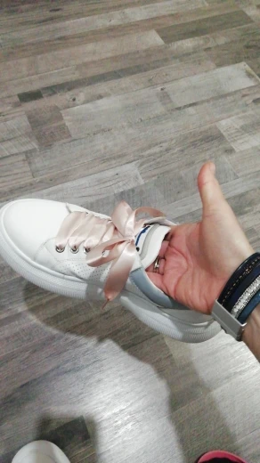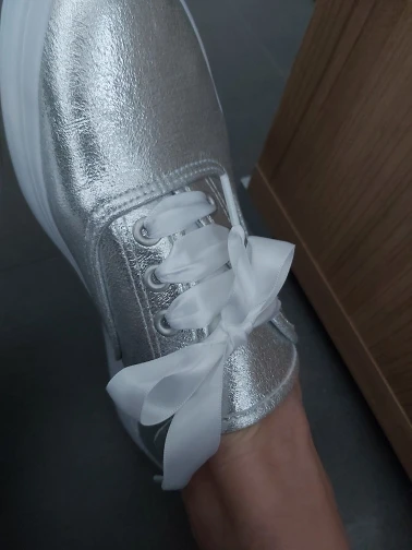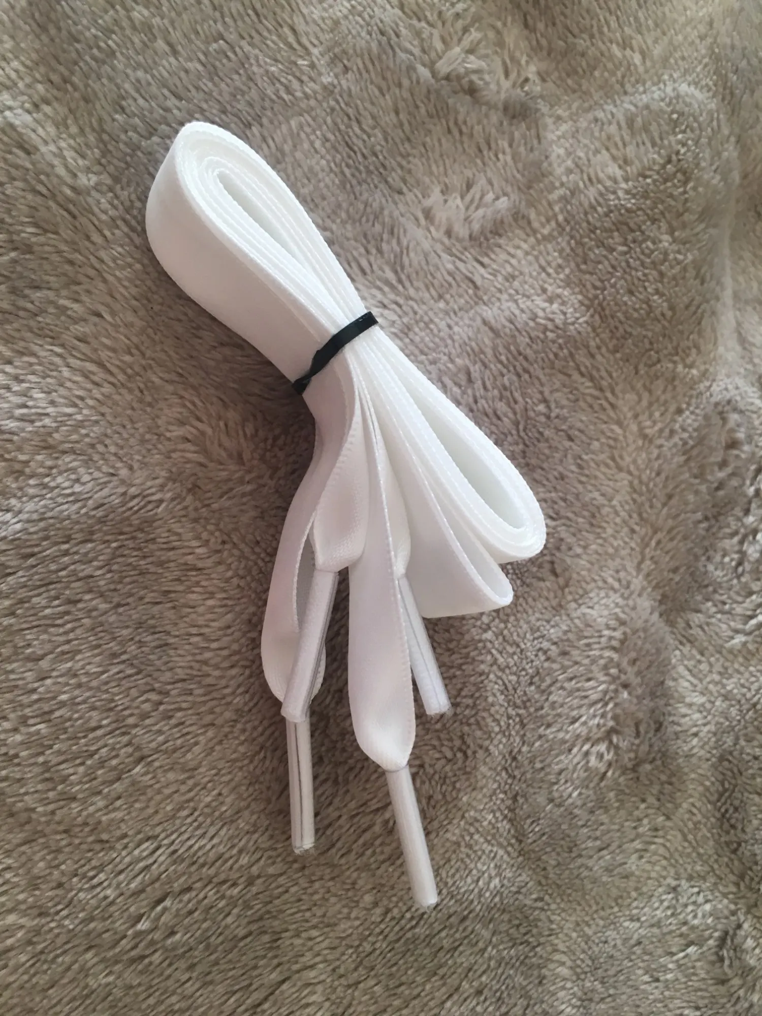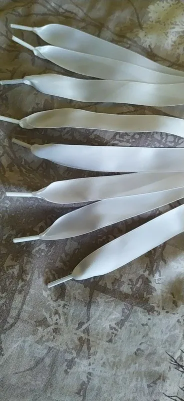 Спасибо большое продавцу! Очень красивые шнурки, хорошие крепкие ленты. Были аккуратно упакованы и перетянуты резиночкой. Молочный цвет как на картинке, выглядит здорово!
