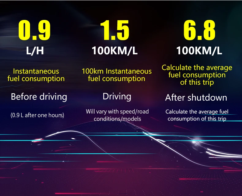 2. Он может отображать скорость вождения, скорость двигателя, мгновенный расход топлива, средний расход топлива, часы, количество пройденных километров, это время вождения, 100 км время ускорения, может обнаруживать и очищать Код диагностики ошибки автомобиля, нет необходимости в профессиональном оборудовании для устранения.