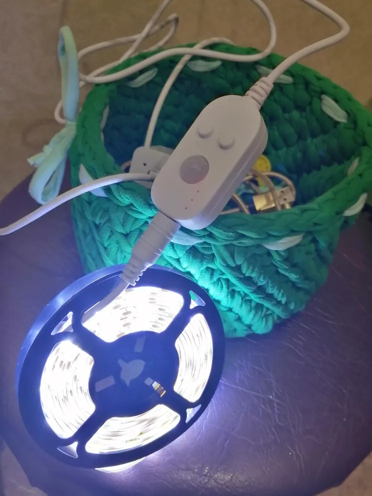 Классная лента. С регулятором свечения. Разные режимы, может постоянно светить, может на движение срабатывать.