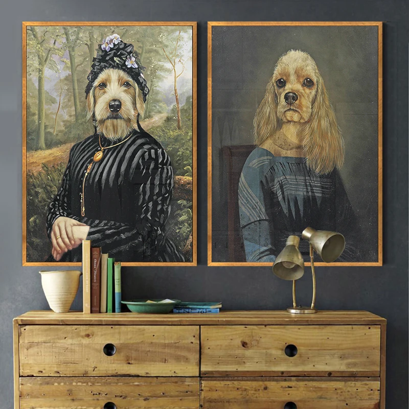 Винтажные стильные настенные художественные плакаты с изображением собаки, плащи с изображением животных, Картина на холсте, Настенная картина для декора гостиной