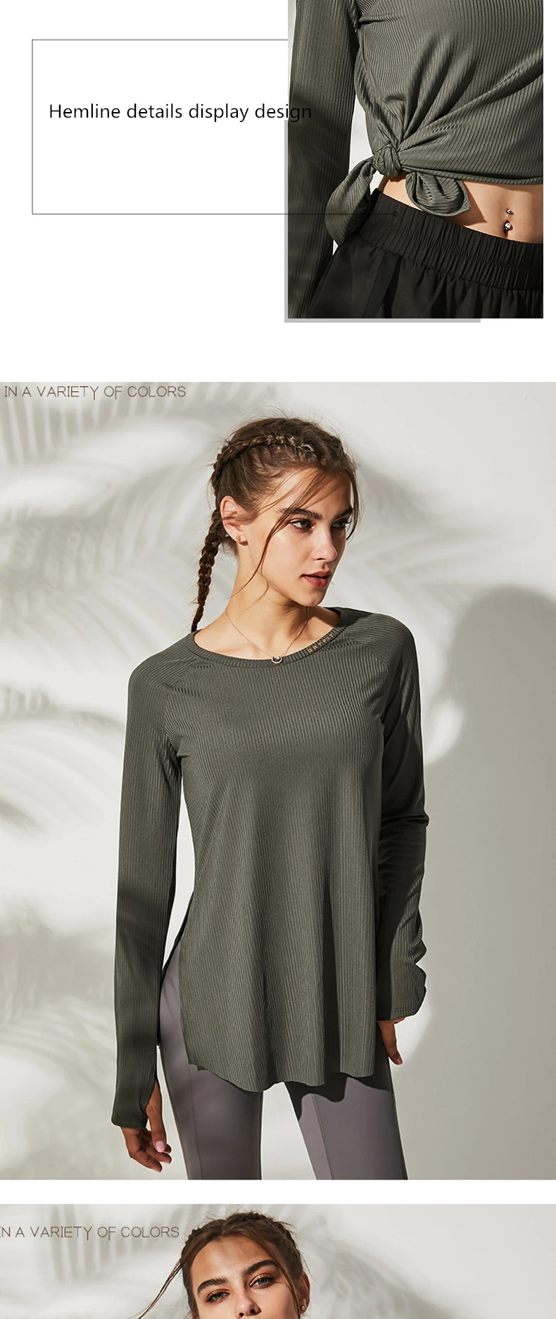 Свободная одежда для йоги, Спортивная рубашка для фитнеса, женская блузка с круглым вырезом, для тренировок, бега, с длинным рукавом, Женский Топ для тренажерного зала с отверстиями для большого пальца