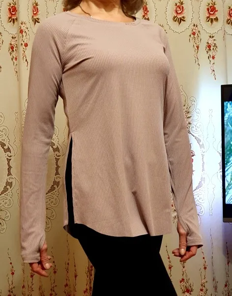 Блузка с разрезом по бокам, а не как на фотографии. Пуховые блузки только усеченные и не подгоняемые, а даже высокие. У меня рост 164 см, вес 60 кг, размер бюстгальтера 75D. Обычно я ношу блузки размером M/L. Эта блузка; Размер L. Очень популярно, особенно в обхвате груди. Рукава немного короткие, вставка kciuków в дырочки вызывает, что блузка очень изящная и трудно перемещаться. Ответ: с покупкой я вполне доволен, однако не нравится niedoróbek, так что я уверен, что zanioę для швейной машины для podlozhenia, кроме того, я не буду uzhywalla thumbs.