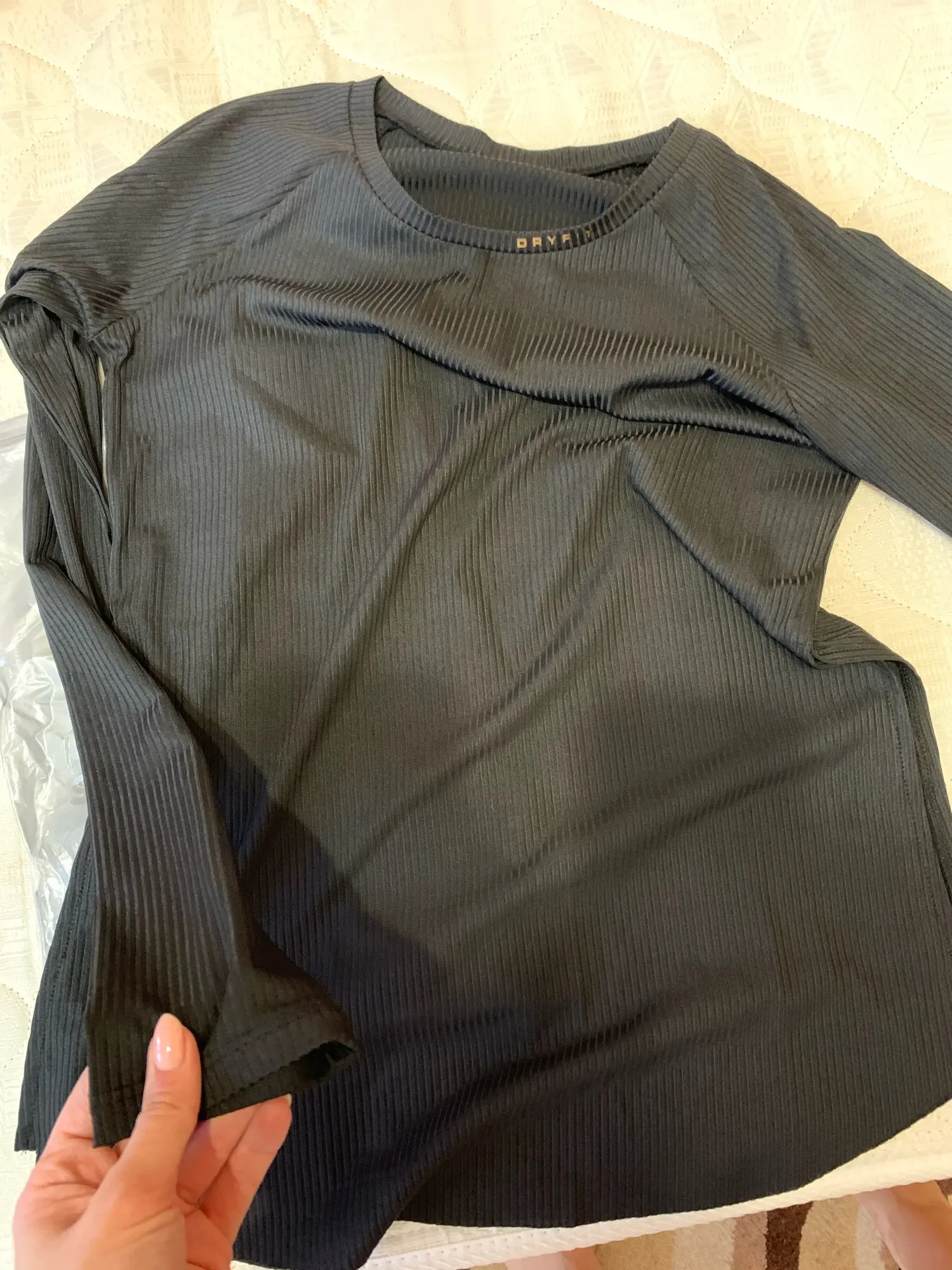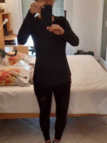 Отлично, я тоже заказал черный теперь, когда увидел, как хорошее качество, этот наконечник. Он показывает пот, но это нормально для светлых цветов. Это круто, и вы не перегреваетесь во время работы в нем. Качество также очень хорошее, и блеск материала делает его более роскошным, чем вы ожидали. Он падает в действительно мягкой и элегантной форме. Вы можете легко перемещаться в нем-я носил его для йоги (с завязками по бокам), для тренировок по весу и для бега, и это было очень удобно для всех 3. Отверстия для большого пальца не подходят для людей с длинными руками, Но мне нравится, что рукава действительно длинные, так как они сохраняют ваши руки в тепле и защищают при поднятии веса. Для справки, мои измерения 90 см-70 см-100 см, и я 163 см высотой и 66 кг, и Размер XL подходит как на фотографиях. Не могу дождаться получения черного. Быстрая доставка. Он был здесь в течение 10 дней.