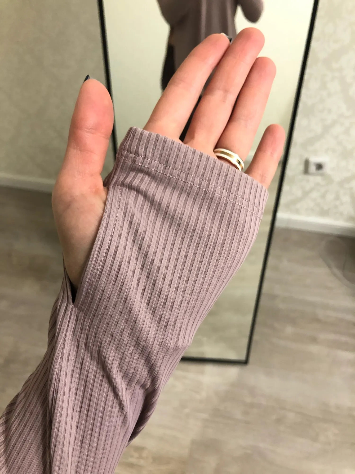 Отличная кофточка для спорта, не хлопок. Цвет точный, дошла за 3 недели.