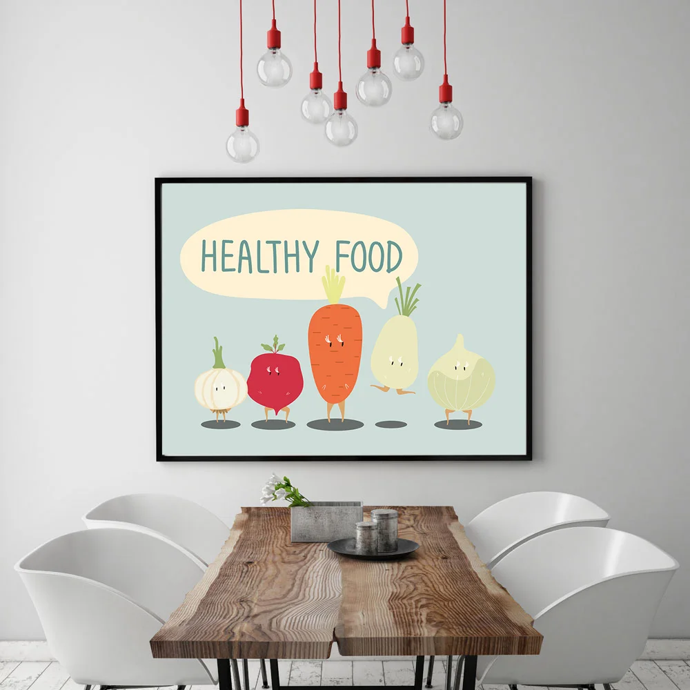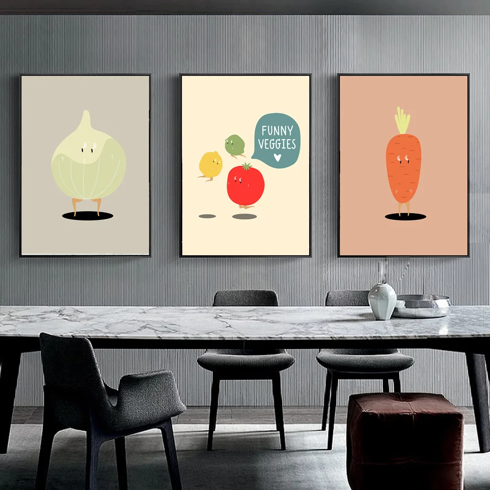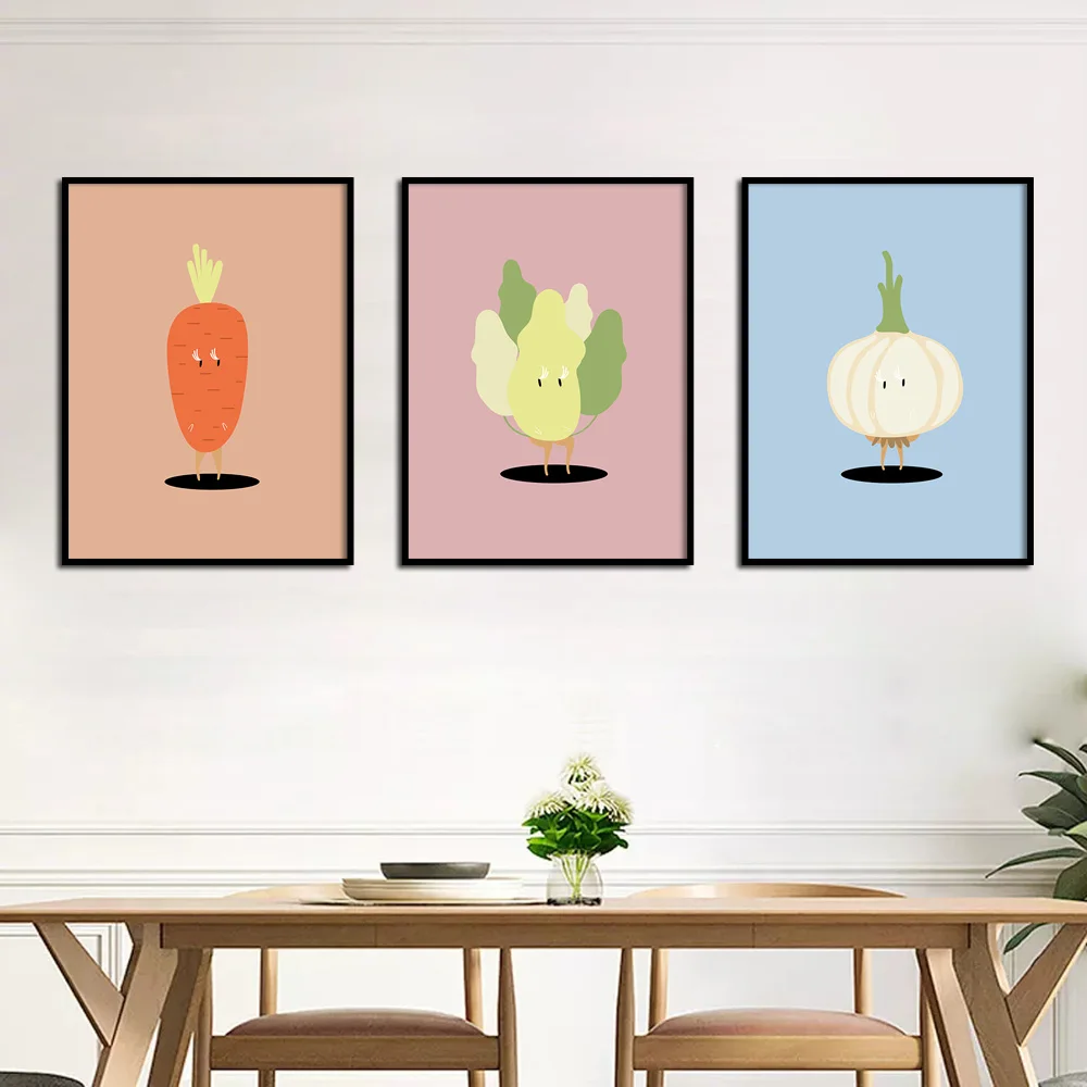 Мультяшные Овощи здоровая еда баклажаны морковка скандинавские плакаты и принты Настенная картина на холсте настенные картины декор для кухни
