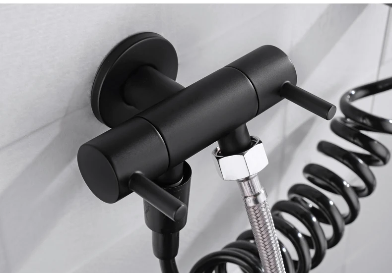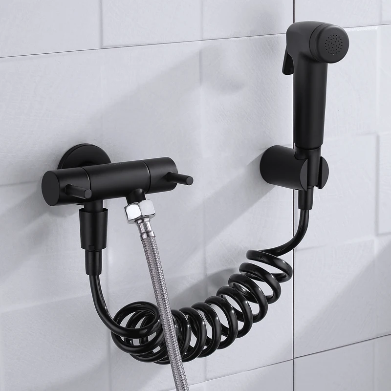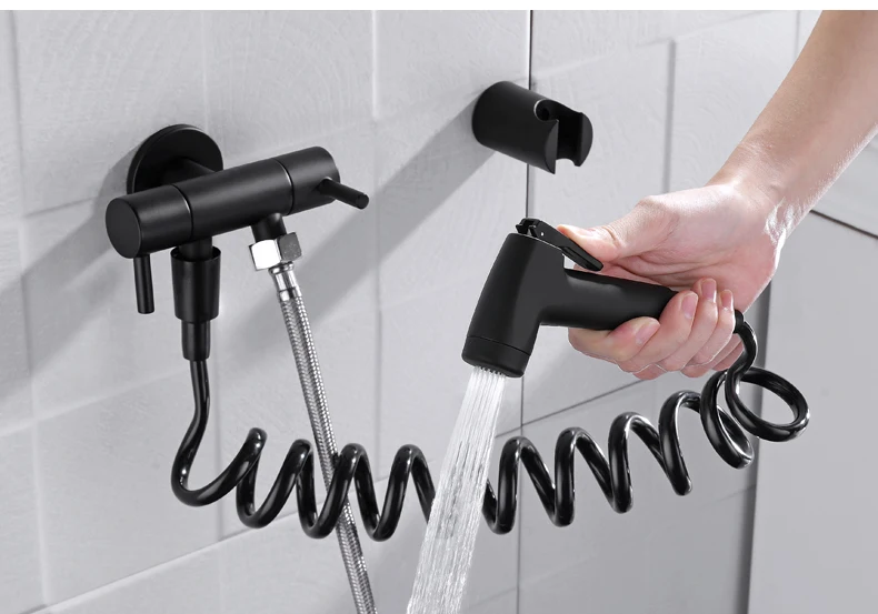 Смеситель для ванной комнаты, унитаза, биде, душа, черный держатель, кронштейн и пружинный шланг, PVD шланг, настенный