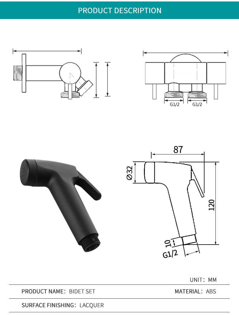 Биде Душ Смеситель для биде + ручной душ + шланг для душа + держательВысококачественный черный лак. Удобный, прочный.