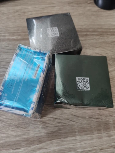 Отличная упаковка, ехала посылка 2 месяца, не помялась. Зелёная баночка чуть протекла, хотя была плотно закрыта. Сами патчи тонкие, запах приятный, на шампунь похож)) Срок годности до 2023. По качеству исполнения также понравились и коробка, и баночка. Рекомендую.