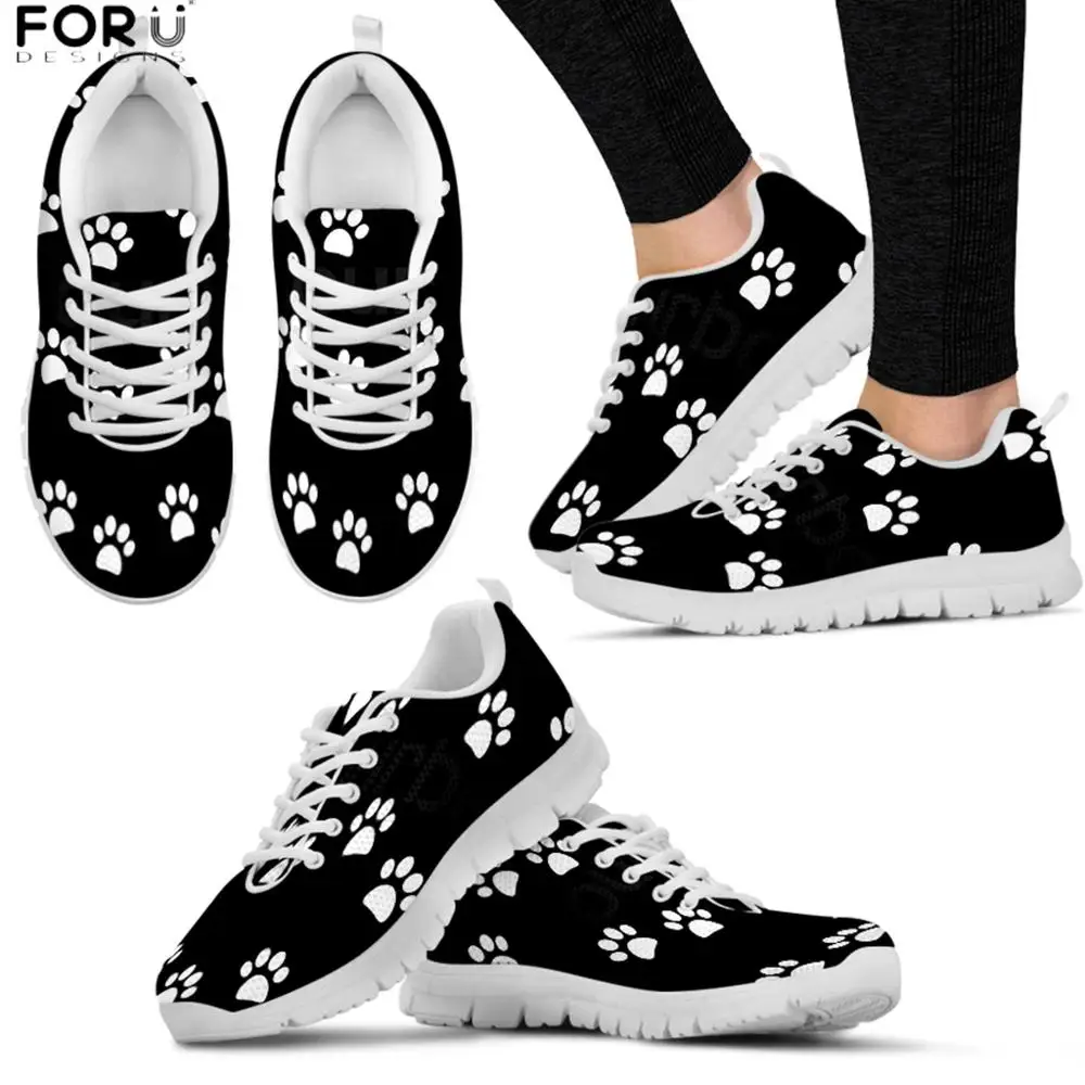 Женские кроссовки с принтом лап FORUDESIGNS, белые дышащие кроссовки с рисунком лап, повседневная обувь на плоской подошве для весны и осени