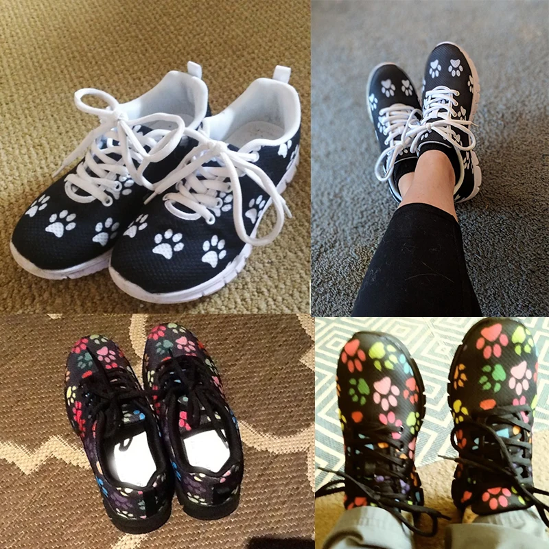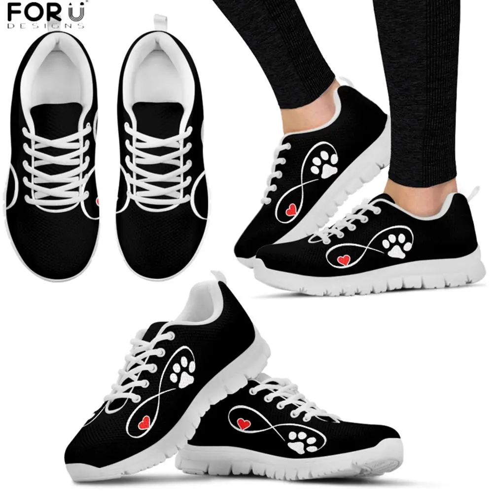 Кроссовки FORUDESIGNS женские с принтом лапа, милая обувь с принтом сердец, дышащие, повседневная обувь на плоской подошве
