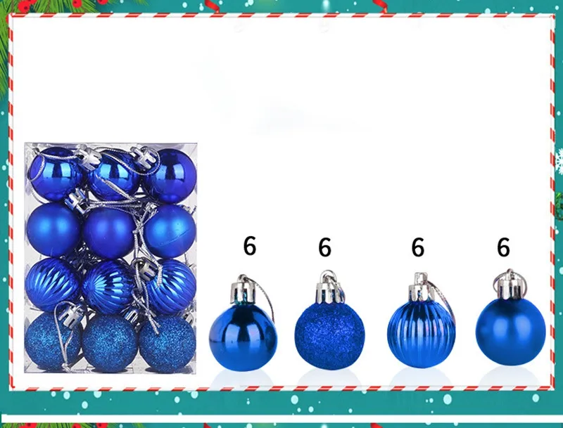 Елочные шары, 3 см, декоративные шары для украшения елки, 24 шт.