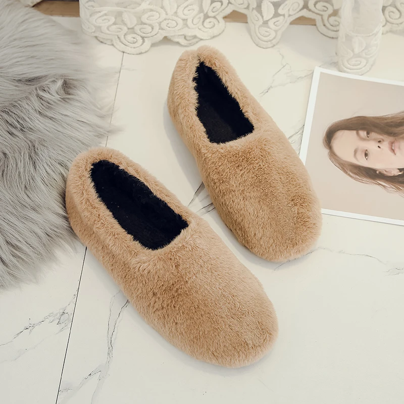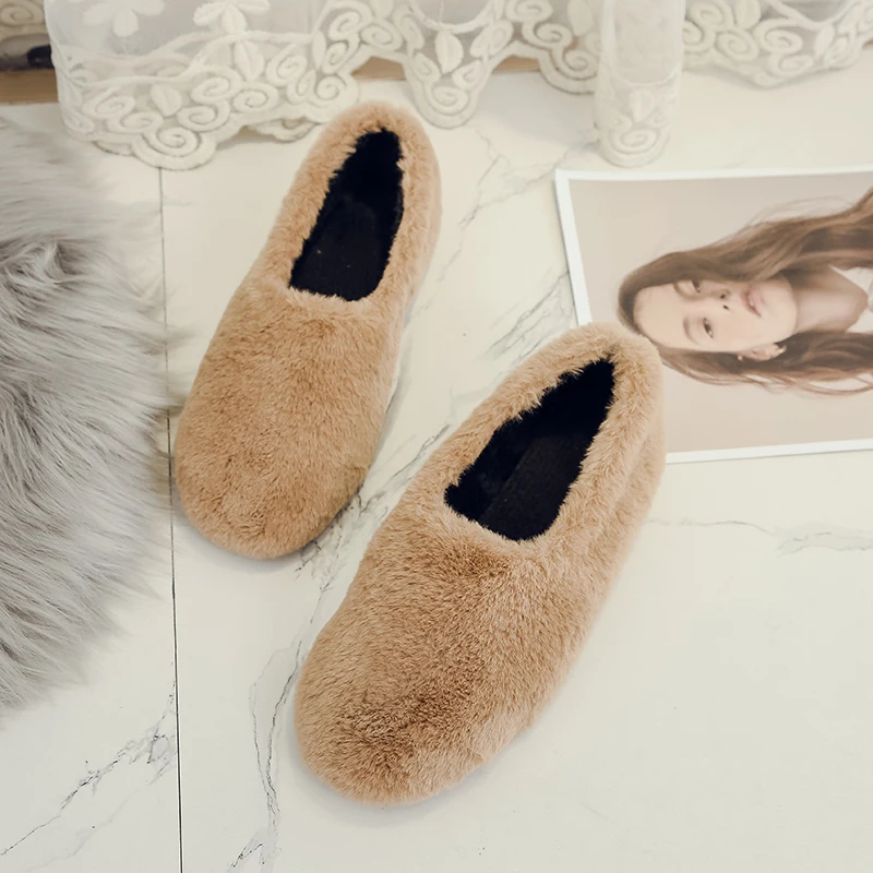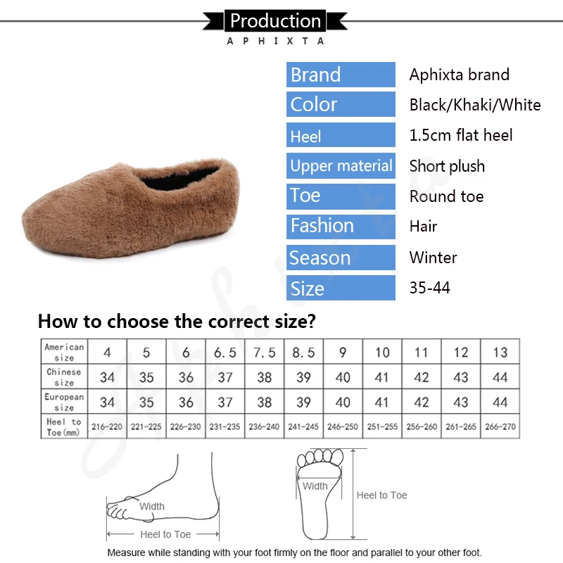 Меховые Лоферы Aphixta больших размеров 35-44, женская зимняя теплая обувь 2022, балетные туфли для женщин, обувь на плоской подошве
