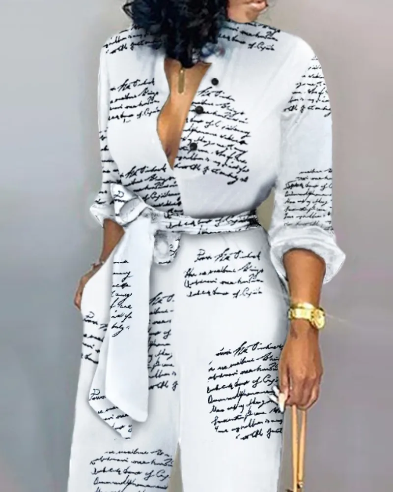 Женский Повседневный комбинезон с длинным рукавом и надписью