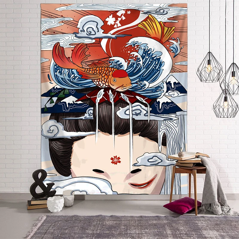 Японский подвесной гобелен Kanagawa с принтом волн, Кит, олень Arowana, настенный подвесной гобелены в стиле бохо, покрывало, одеяло