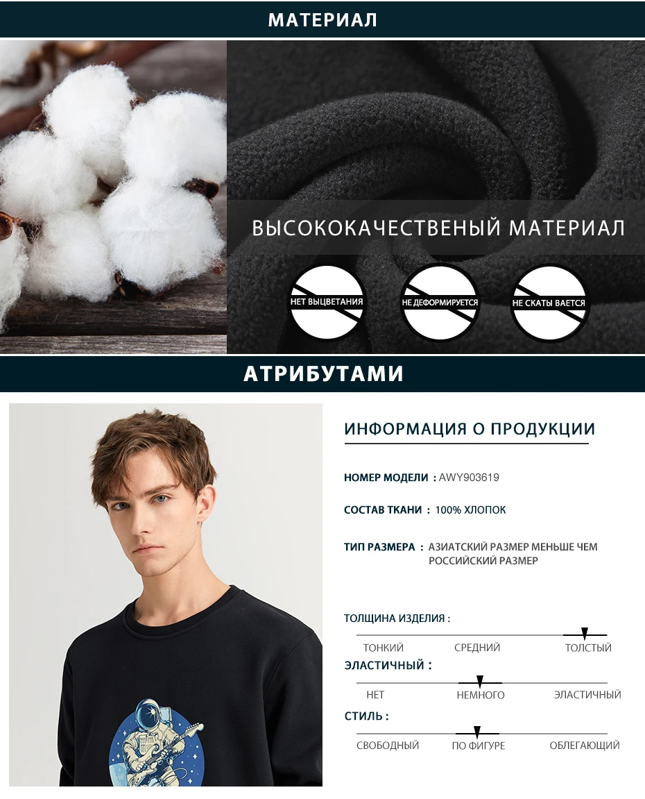 Пионерский лагерь, новинка, Толстые мужские толстовки с космическим принтом, 100% хлопок, черные повседневные толстовки для мужчин, 2019 AWY903619