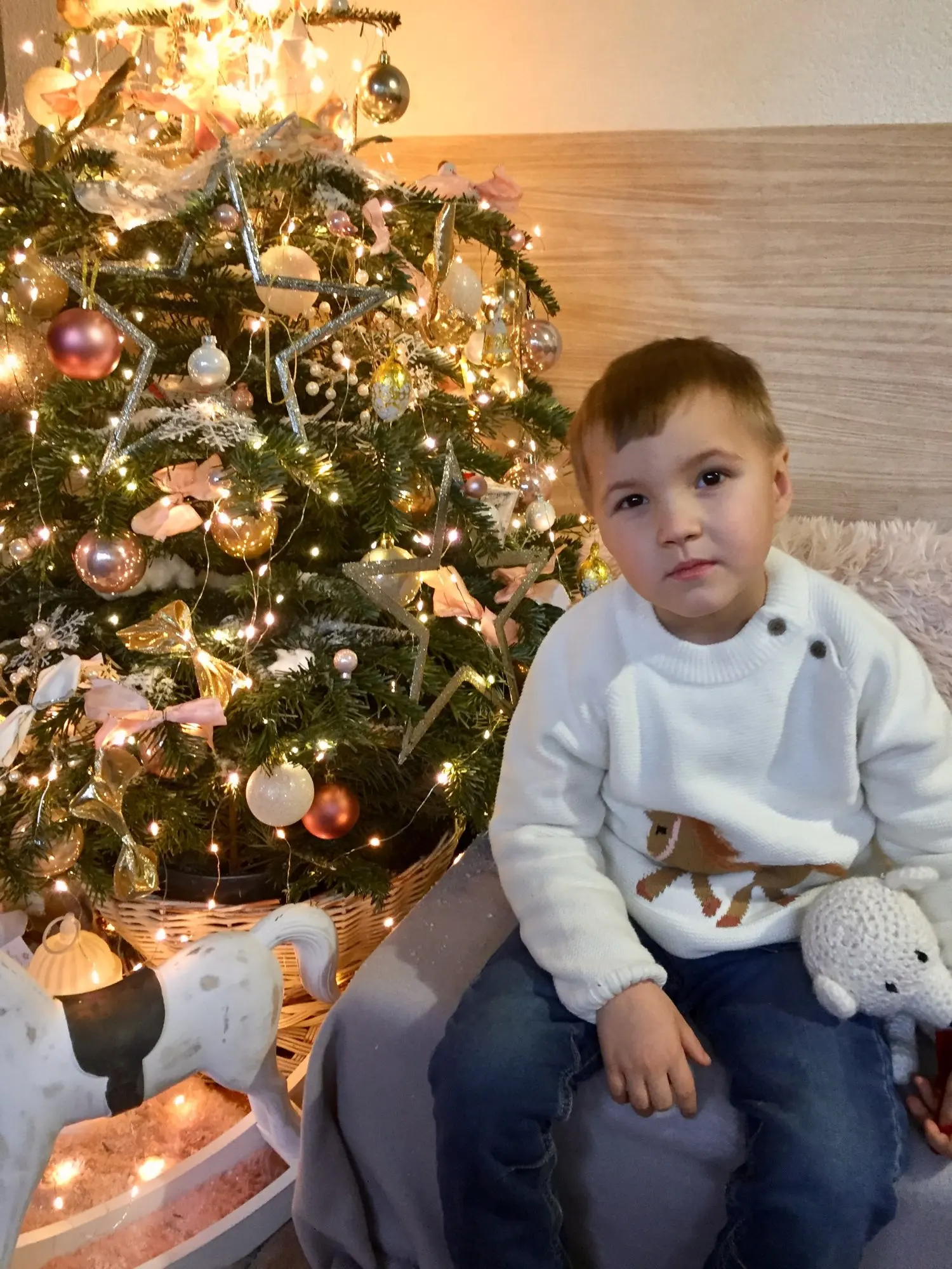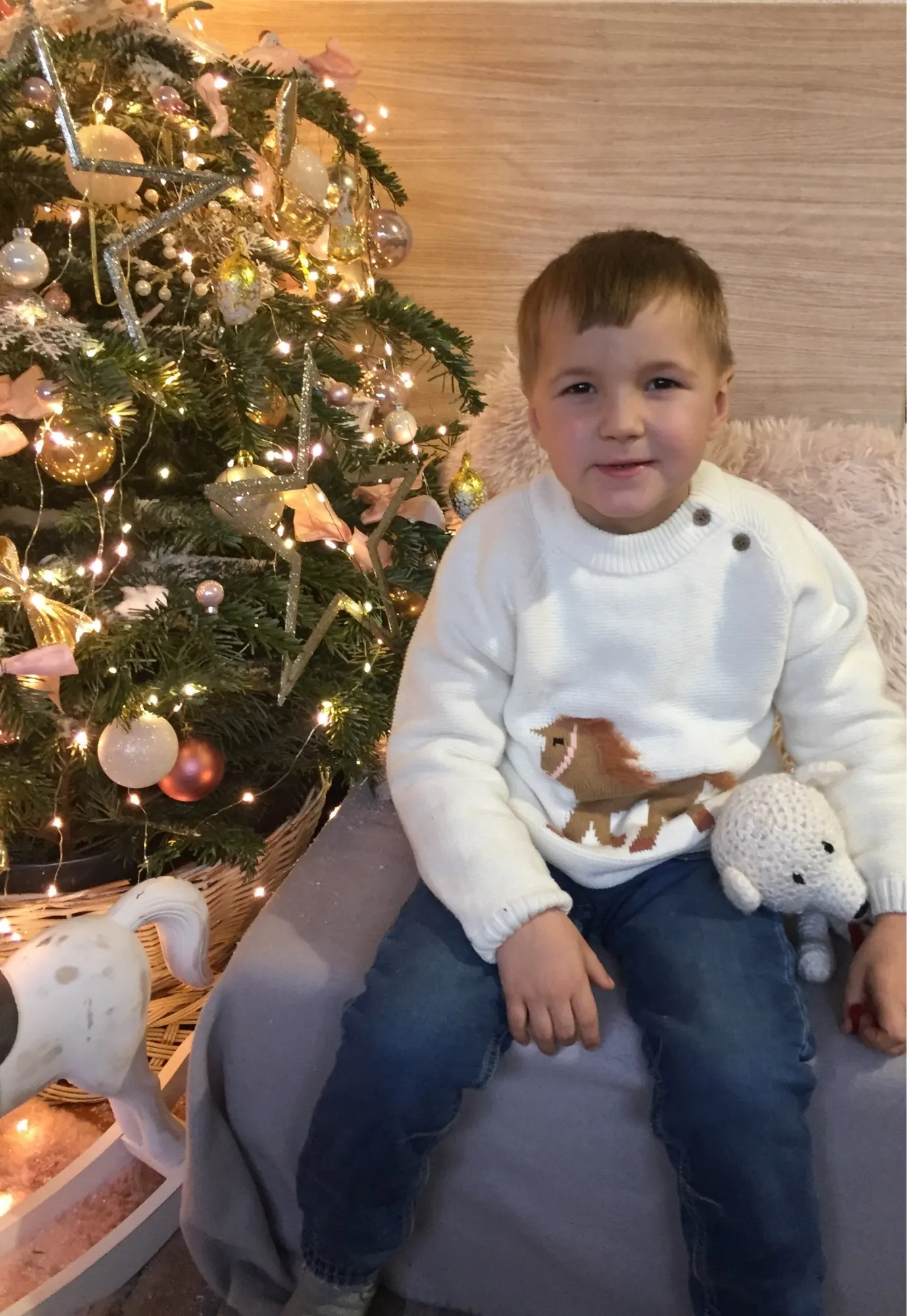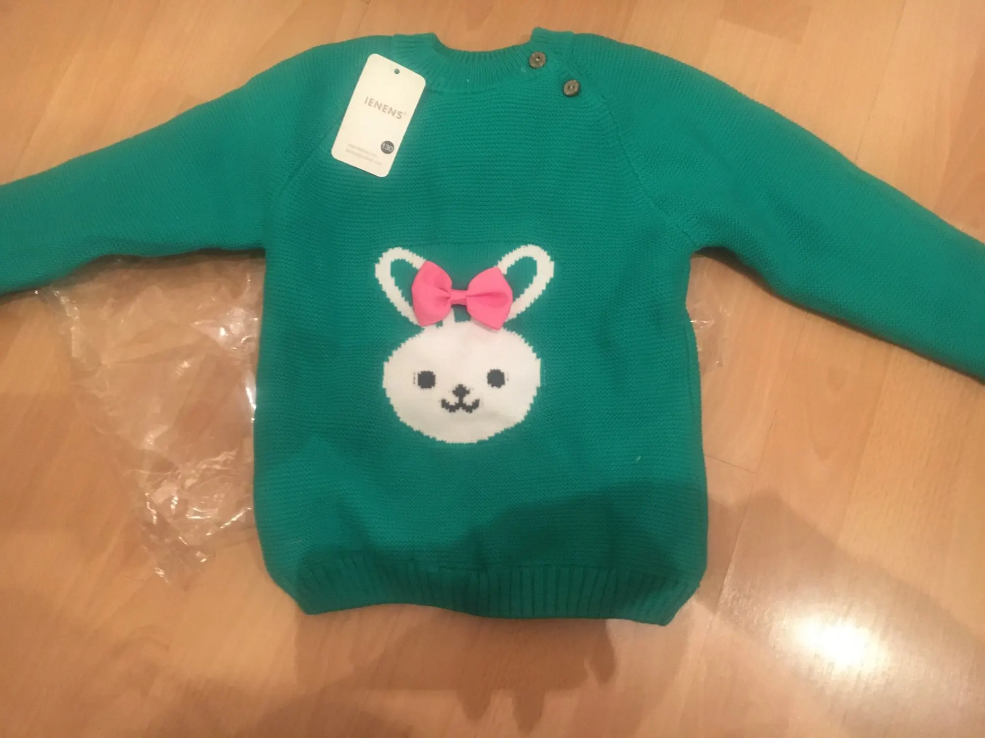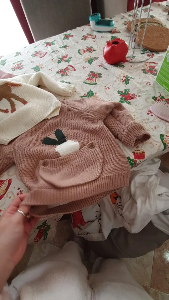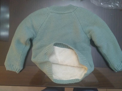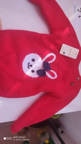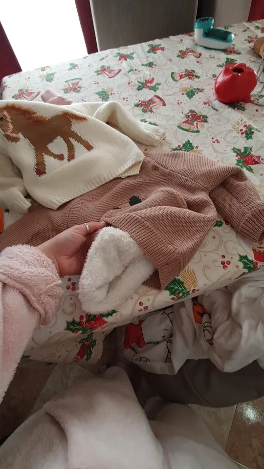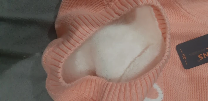 очень быстрая доставка, 2 недели. красивый, нарядный джемпер, все аккуратно сделано, запаха нет. на горловине торчит пара ниток, но не критично. внутри тонкий искусственный мех, будет тепло в нем, размер соответствует, нам на 2 месяца еще большой