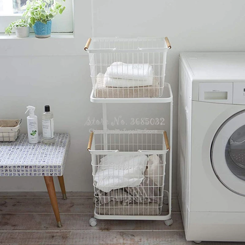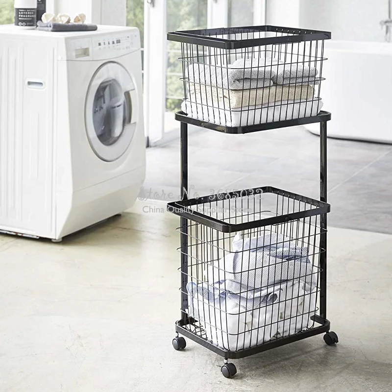 2-х слойная корзина для хранения одежды, напольная стойка для ванной комнаты, для хранения мелочей, железная корзина для хранения белья с колесиком