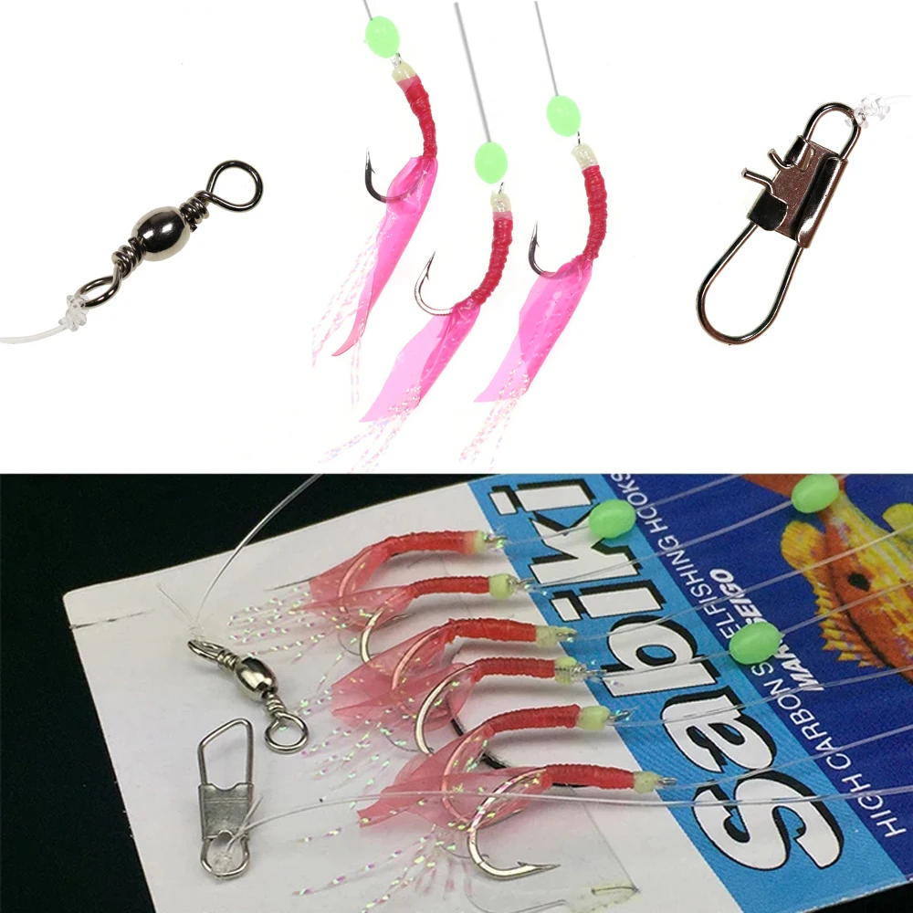 3 сумки, светящиеся мягкие рыболовные крючки в виде креветки, приманка, искусственная рыболовная шнуровка, крючки, приманка, приманка для морской ловли окуня, 1 пакет = 6 шт.