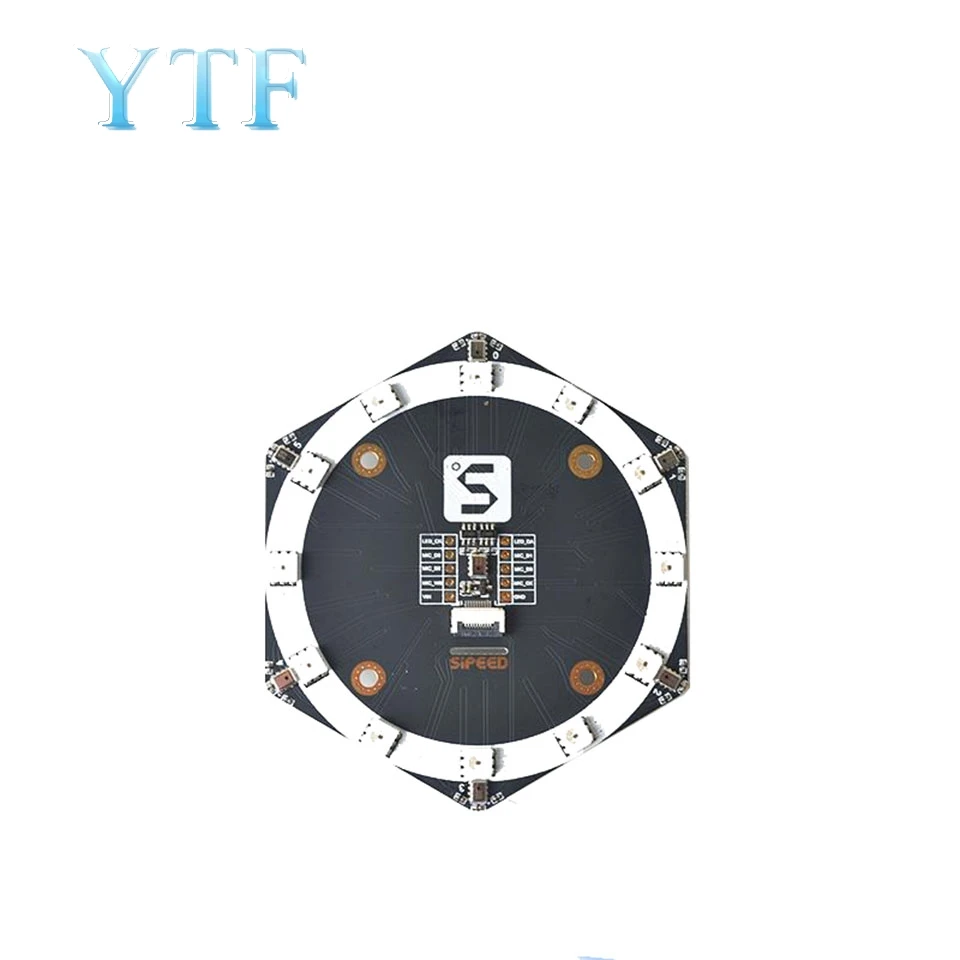 Микрофон MEMS: 6 MSM261S4030H0 массивЧувствительность:-26 (дБ, dBFS @ 1 кГц 1 Па)Отношение сигнал-шум: 57 дБ (полоса пропускания 20 кГц, взвешенный)Размер: 78,1*88,8 ммОсвещение: 12 светодиодов образуют круговой светодиодный массив с несколькими светодиодами, каскадными через двойные сигнальные линии8-битный (256 уровней) Регулируемый цвет, 5 бит (32 уровня) регулировочный разъем яркости: Поддержка 2*5 P 2,54 ммТерминал и разъем FPC 10 P 0,5 ммИнформация о продукте микрофона: