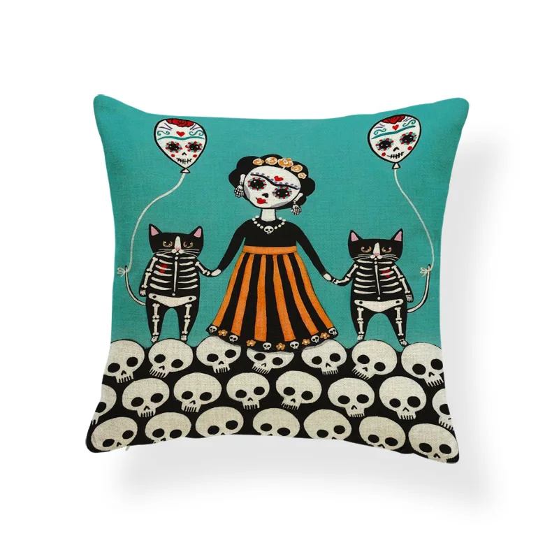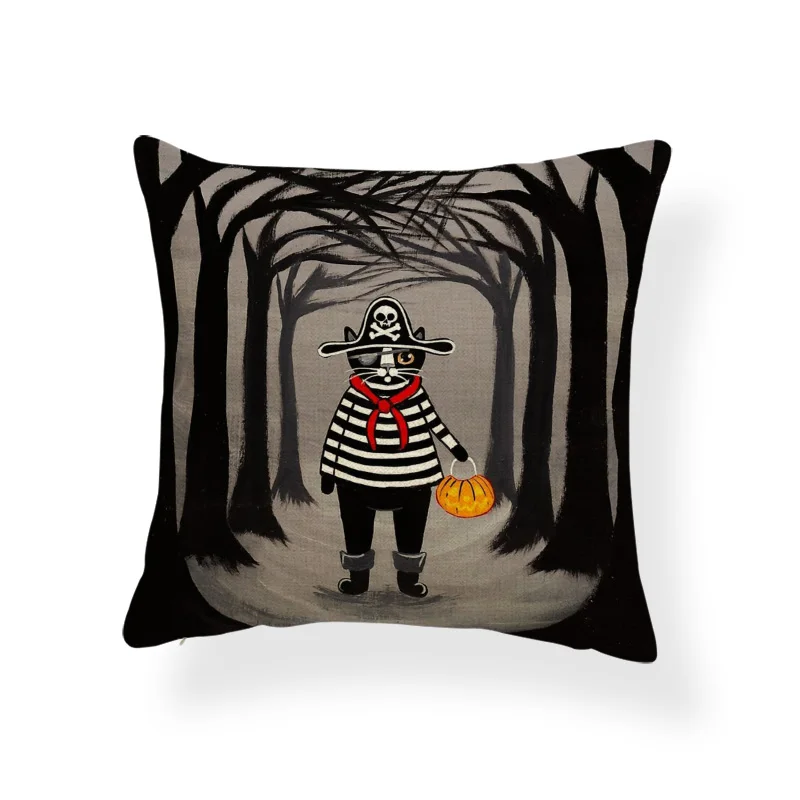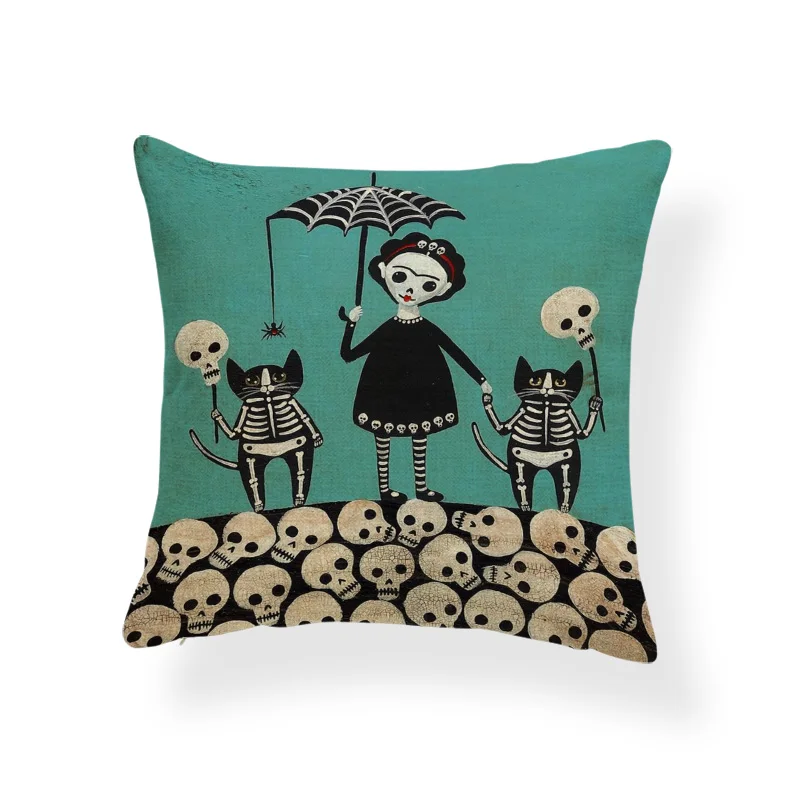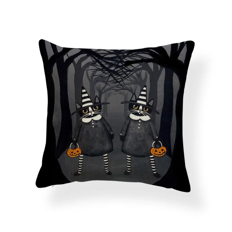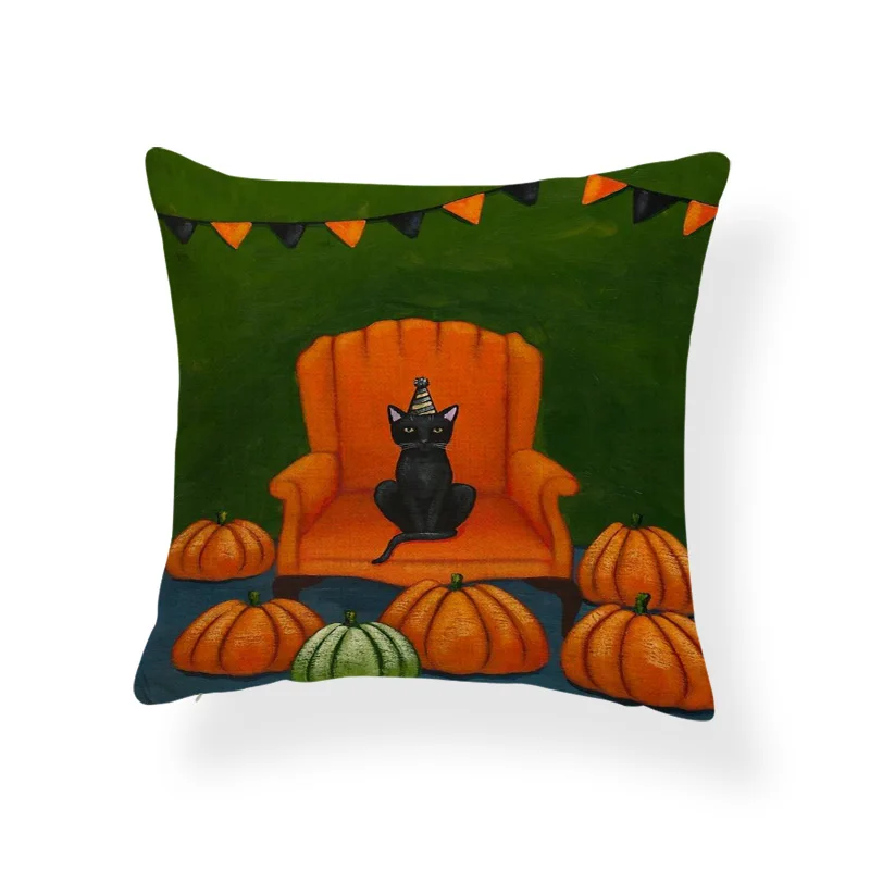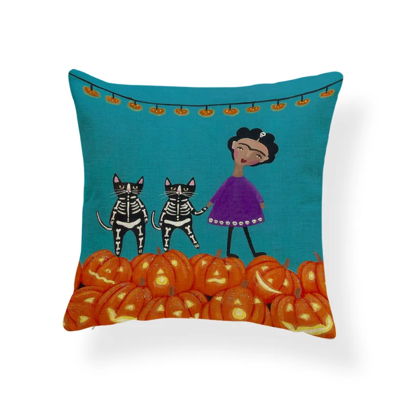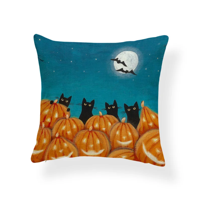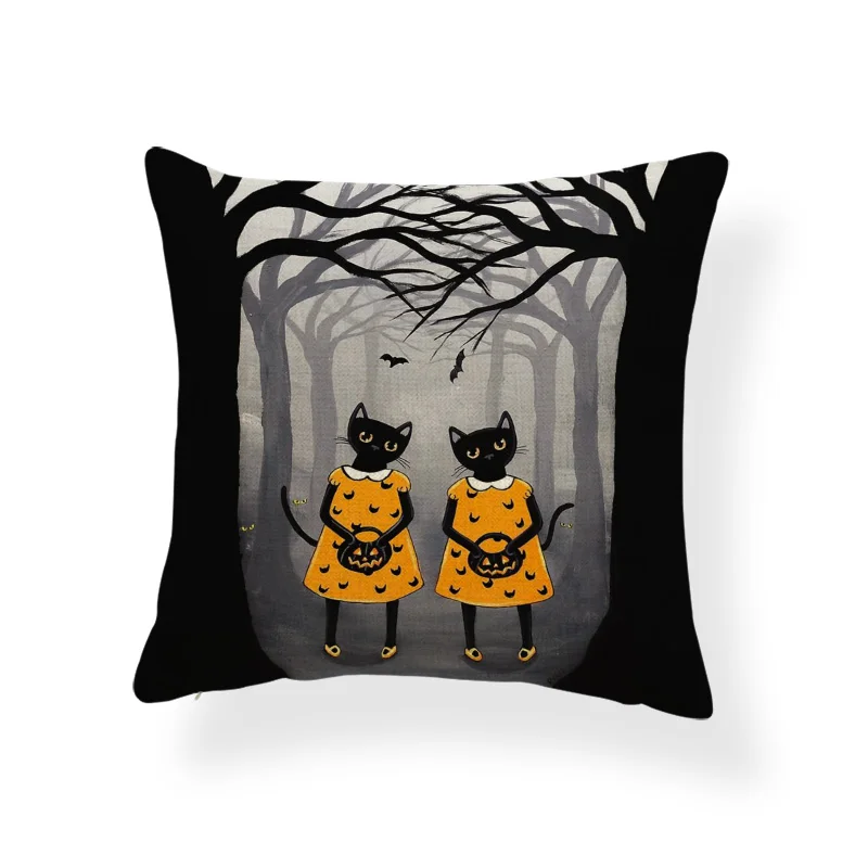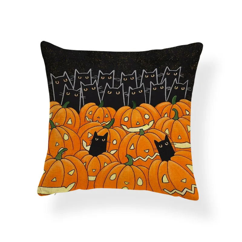 Ужасная Милая наволочка, черный череп, тыква, кот, мультфильм, квадратная наволочка, украшение для дома, Полиэстеровая льняная наволочка 45*45 см