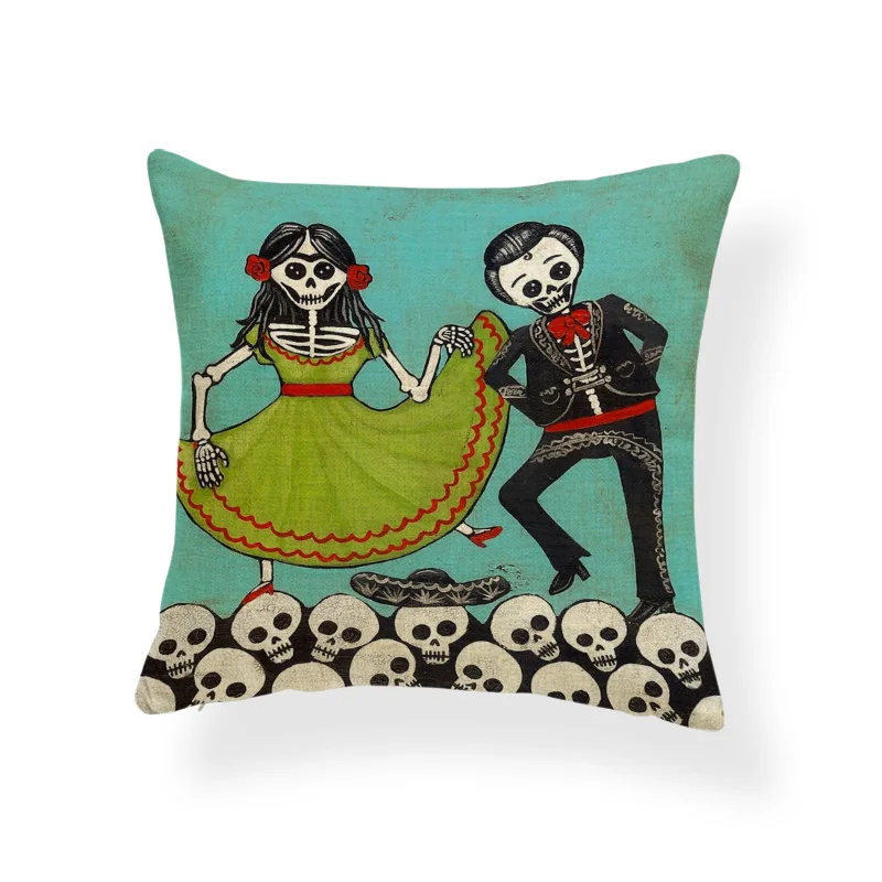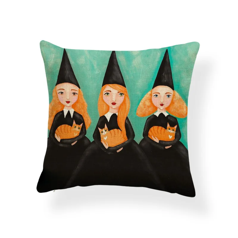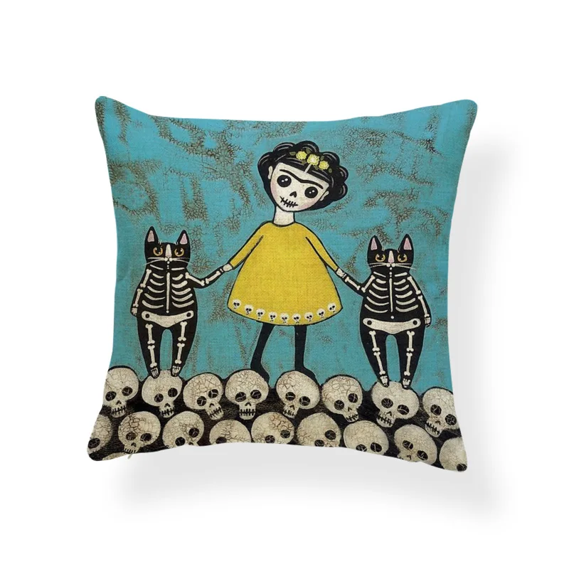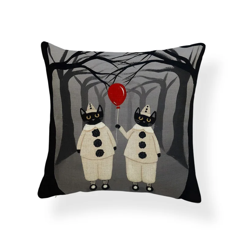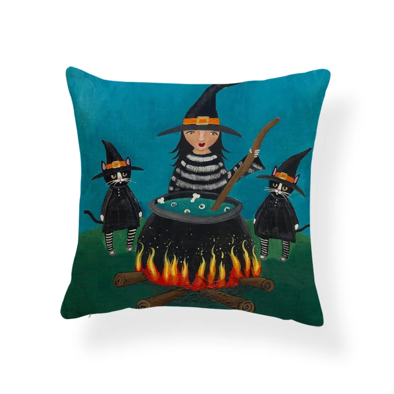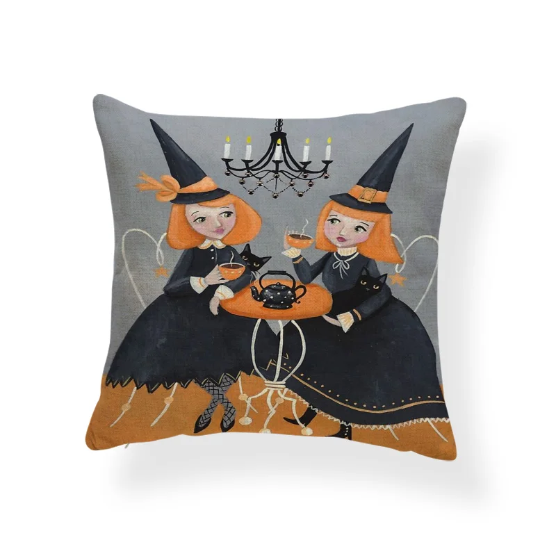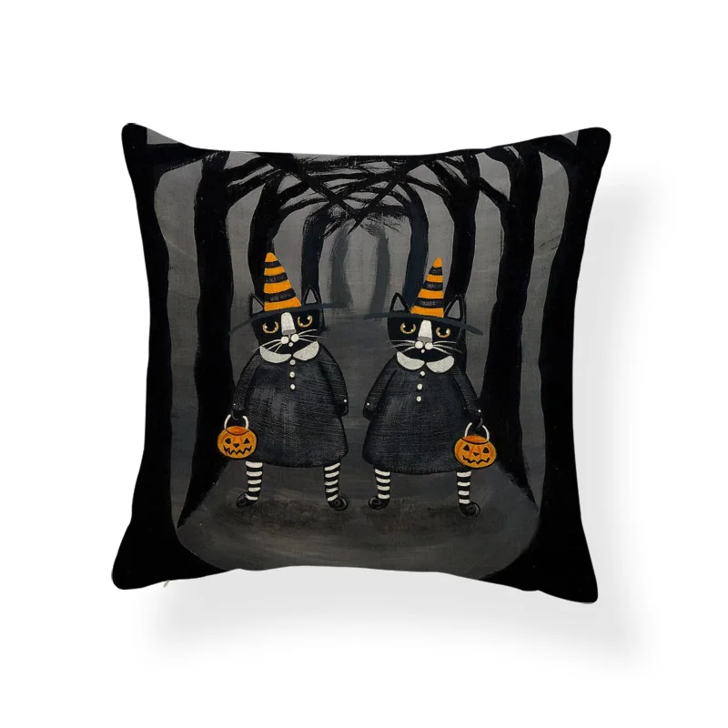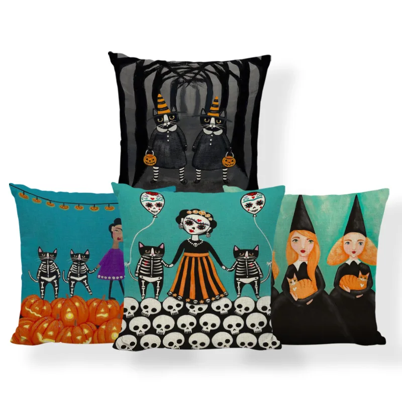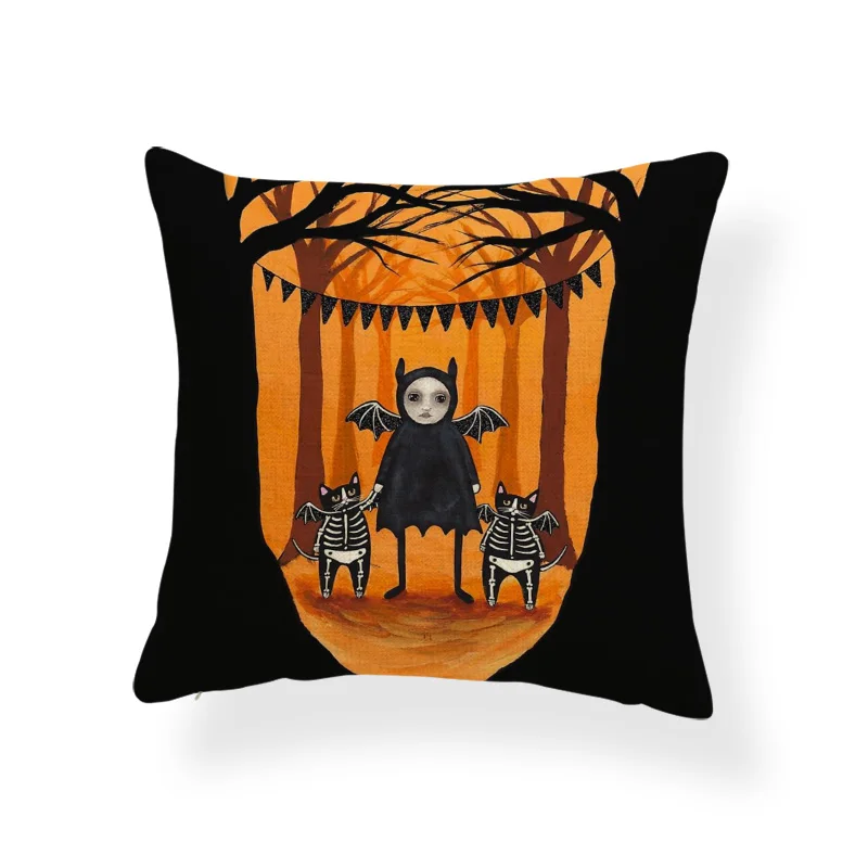 Ужасная Милая наволочка, черный череп, тыква, кот, мультфильм, квадратная наволочка, украшение для дома, Полиэстеровая льняная наволочка 45*45 см
