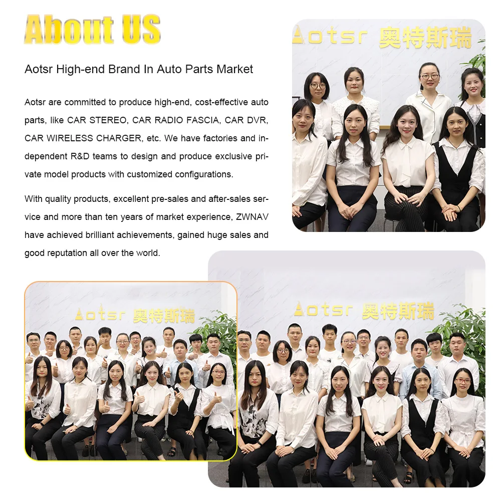 Aotsr Лидирующий бренд на рынке автозапчастей Aotsr стремится производить высококачественные, экономически эффективные автозапчасти, такие как автомобильная DVD система, Автомобильная Радио фасция, Автомобильный видеорегистратор, автомобильное беспроводное зарядное устройство... и так далее. У нас есть заводы и независимые R & D команды для разработки и производства эксклюзивных продуктов с индивидуальными конфигурациями. С качественной продукцией, отличным предпродажным и послепродажным обслуживанием и более чем десятилетним опытом работы на рынке. AOTSR добилась блестящих успехов, завоевала огромные продажи и хорошую репутацию во всем мире.