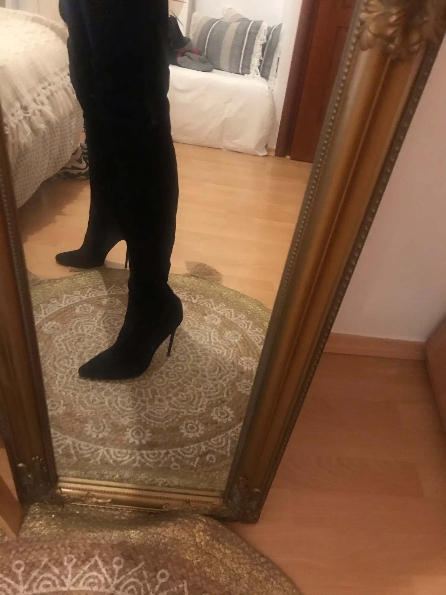 Доставка достаточно быстрая. Сапоги не плохие. Получила в воздушной подушке. Присутствует сильный запах. Надеюсь что выветрится. Заказывала 36 прислали 37. Ну ладно с носком пойдёт. Ноги у меня не толстые и не тонкие. Одеть смогла. Каблук высокий но ходить вполне можно.