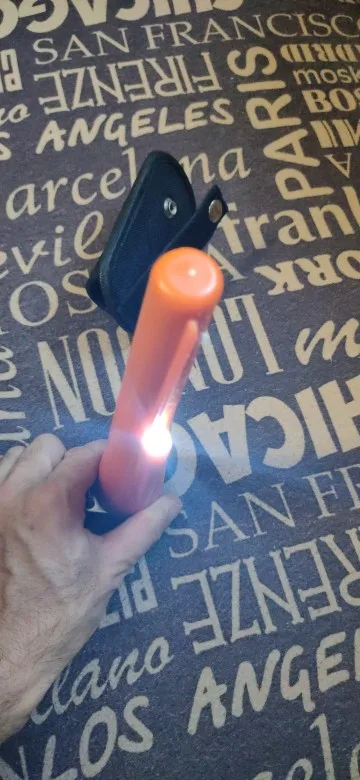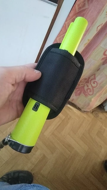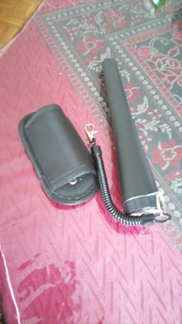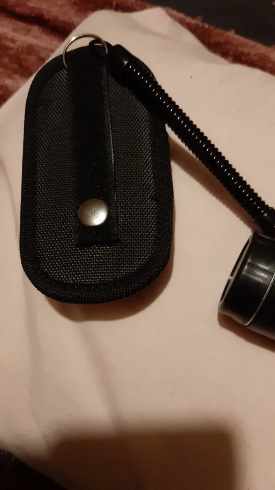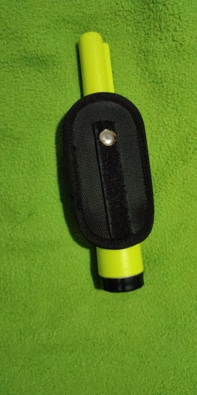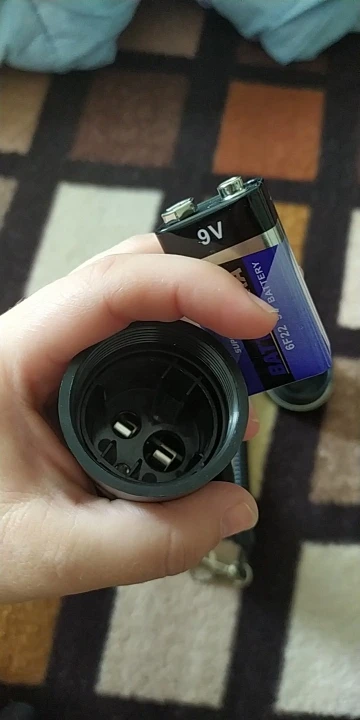 пришёл быстро, работает хорошо. в подарок карабинчик с пружиной и чехол для переноски на поясе. питание от батареи крона 9v